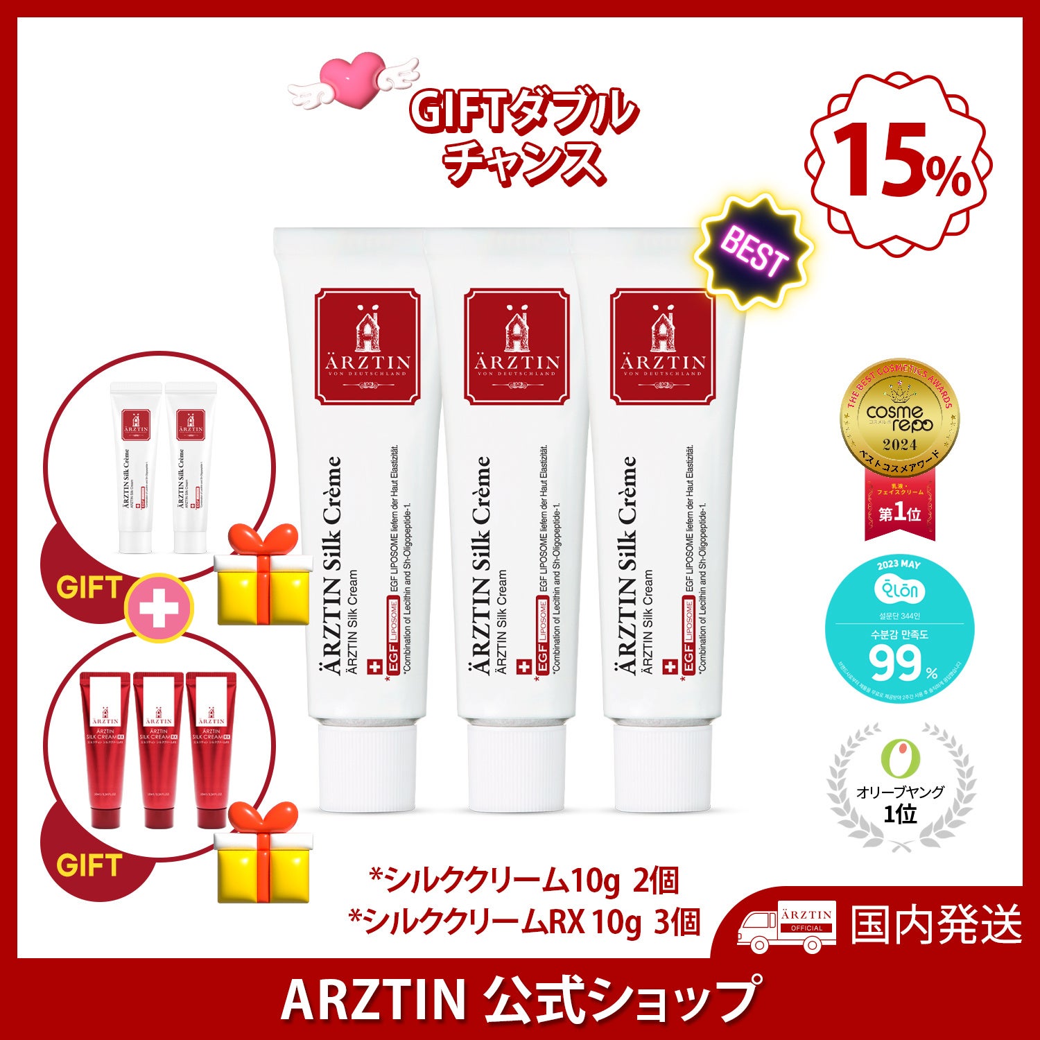 今回のメガ割イベントセット構成の商品以外にもエルツティンの『シルククリームRX 10G』単品の商品もプレゼントする。プレゼントたくさんもらえるイベントを行う。エルツティンのシルクセラムは弾力効果がありEGFリポソームと3GFコンプレックス配合で早くお肌の弾力を回復させる。17種類の肌アミノ酸と3重発酵エキス30,000ppm配合で 肌に深い保湿を提供し、乾燥を防ぎ、肌をしっとりと保ちますので高保湿光彩効果がある。他には 肌バリアの強化、 敏感肌にも使用可能、ブライトニング効果の様々な性能でシルクセラムを感じてください。