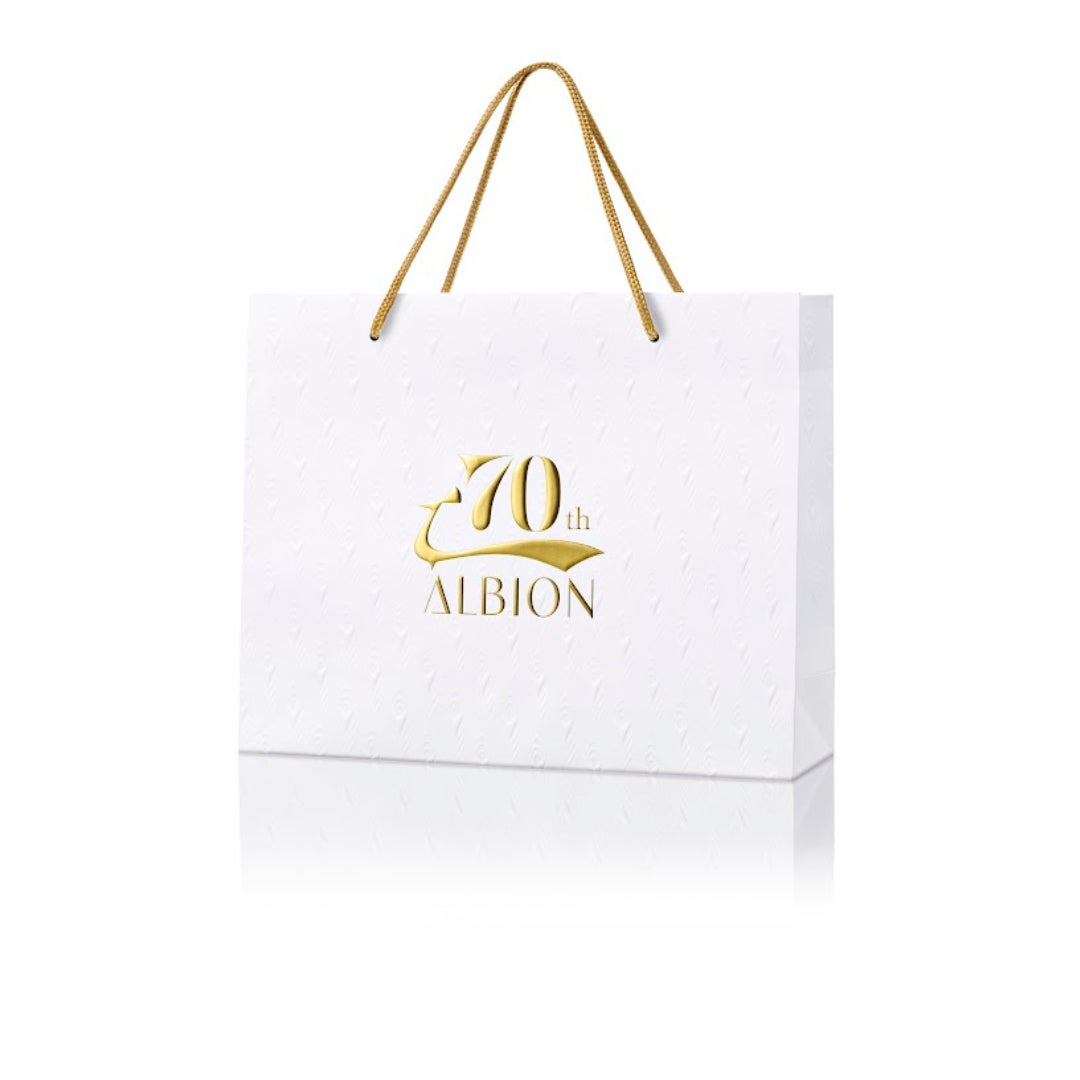3月2日よりアルビオン全店舗にて、商品をご購入のお客様に70周年限定のショッパーをお渡しいたします。(数量限定につき、なくなり次第終了となります。)