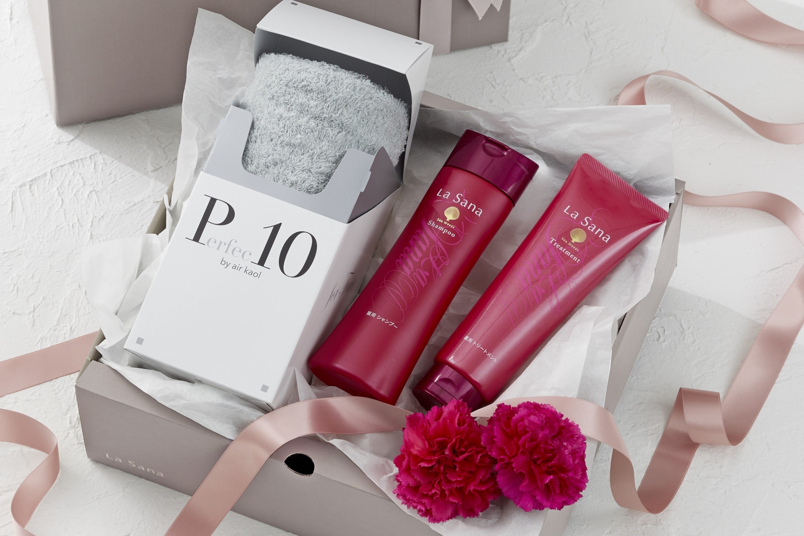 こうした取り組みを経て今回、「特別な日にはもちろん、なにげない日にこそ“きれい”を贈りたい」という想いを、より多くの方に届けるため、ギフトセットのラインアップを更新しました。今回新たに追加したギフトセットでは、ラサーナのヘアケア・スキンケアなどのアイテムに加え、毎日のケア時間を心地よくするケアグッズを組み合わせることで、使うたびにうれしさを感じられるギフトを目指しています。一部のセットで採用しているタオルは、髪や肌へのやさしさに配慮し、吸水性があり摩擦が少ないものを選定しました。