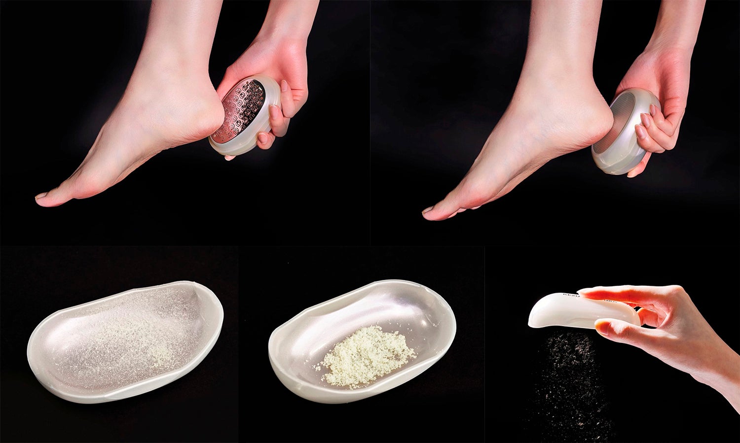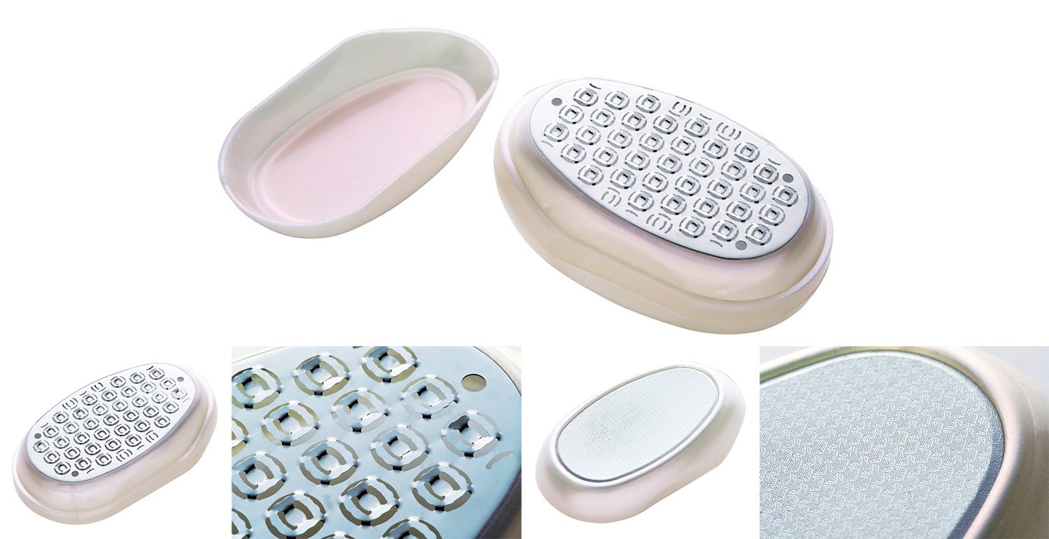まずはステンレス製のHARD面で、たまった角質をしっかりオフ。粗目のヤスリが、気になるガサガサを効率よく削ります。次にSOFT面に付け替えて、細かいヤスリで表面をなめらかに整えれば、つるんとした仕上がりに。