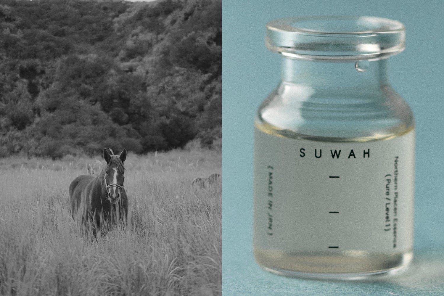世界レベルの競走馬を育成する名門牧場ノーザンファーム にて育った馬の胎盤を原料としています。同牧場では獣医学・栄養学・遺伝学の専門家が常駐し、馬たちは徹底した健康管理のもと、ストレスの少ない環境で育てられています。プラセンタの品質を左右する母馬のコンディションまで管理された環境で採取される胎盤は、安全性・品質ともに高水準。繁殖から出産、飼育、採取まで一貫した管理体制により、製品化後も由来を追跡できる高いトレーサビリティを実現しています。丹念に育まれた無農薬野菜のように、クリーンで高品質なSUWAHだけがスキンケアに使用する事が許された特別なプラセンタです。
