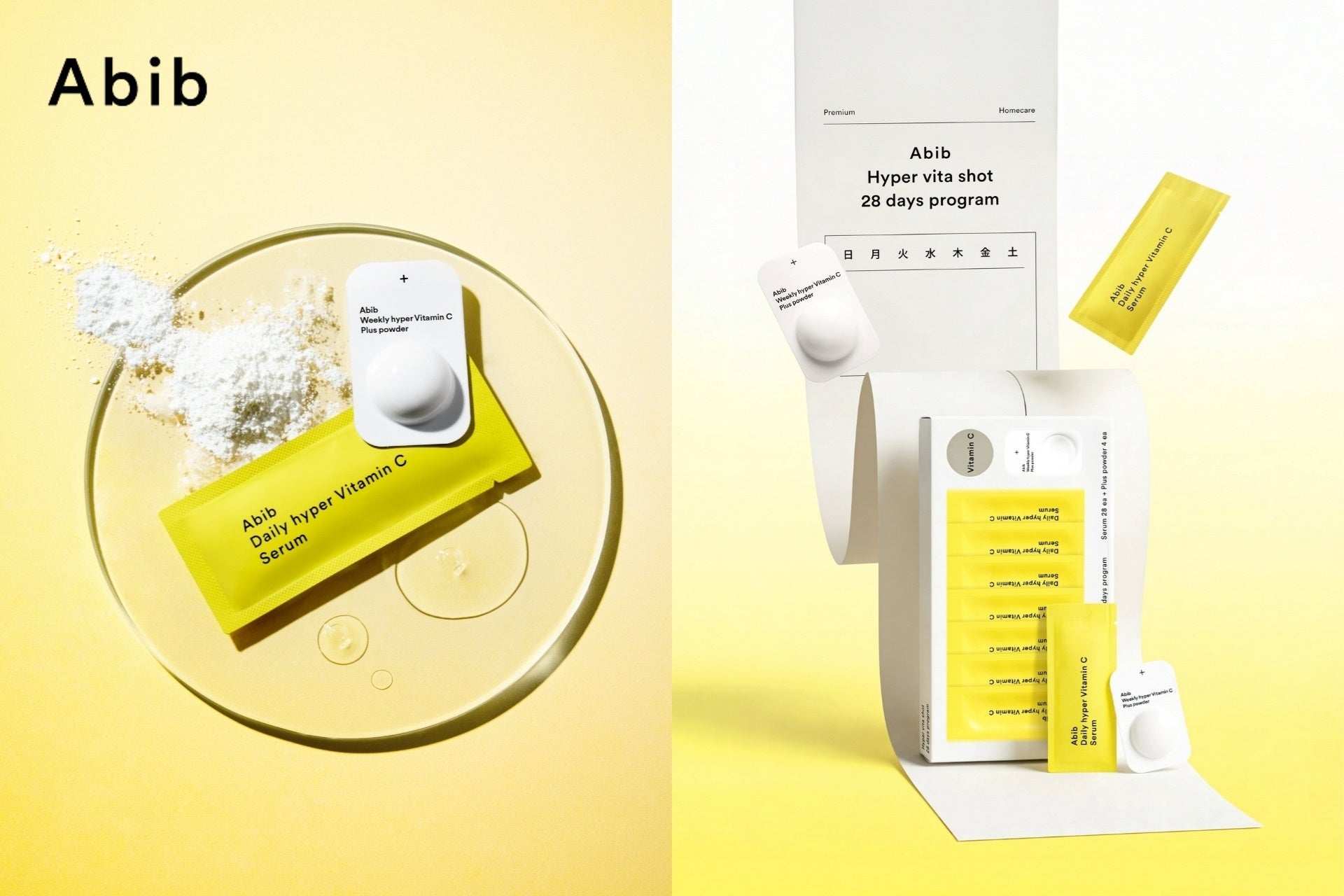 「Abib(アビブ)」は2016年に韓国で誕生した自然派スキンケアブランドです。肌に本来備わっている“コンディションを整える力”に着目し商品開発を進め、その力をサポート&肌がよろこぶ天然由来成分を厳選配合したアイテムを展開し、2025年3月に日本に再上陸いたしました。そして今回、1日1包(※1)、毎日フレッシュに使えるご褒美美容液「ハイパービタショット 28日間プログラム」を3月13日(金)より全国の取扱店にて販売開始いたします。