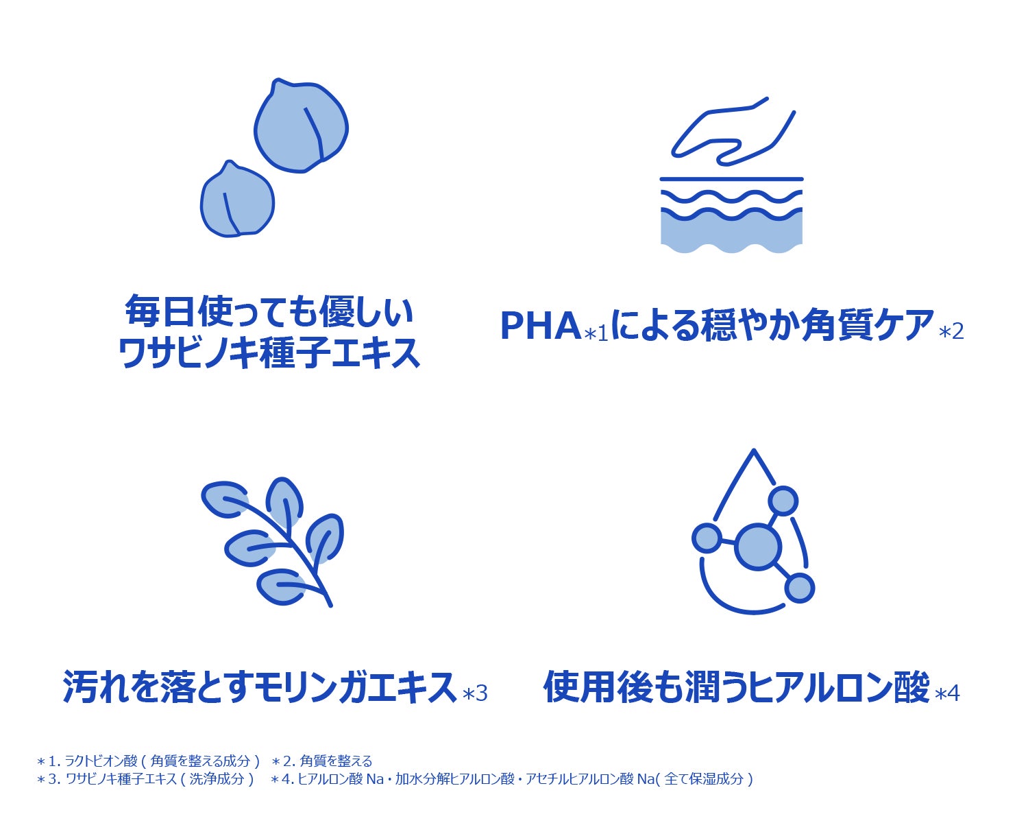 角質除去成分PHA(ラクトビオン酸)が角質をやさしく取り除き、保湿を加えて肌のキメをなめらかに整えます。