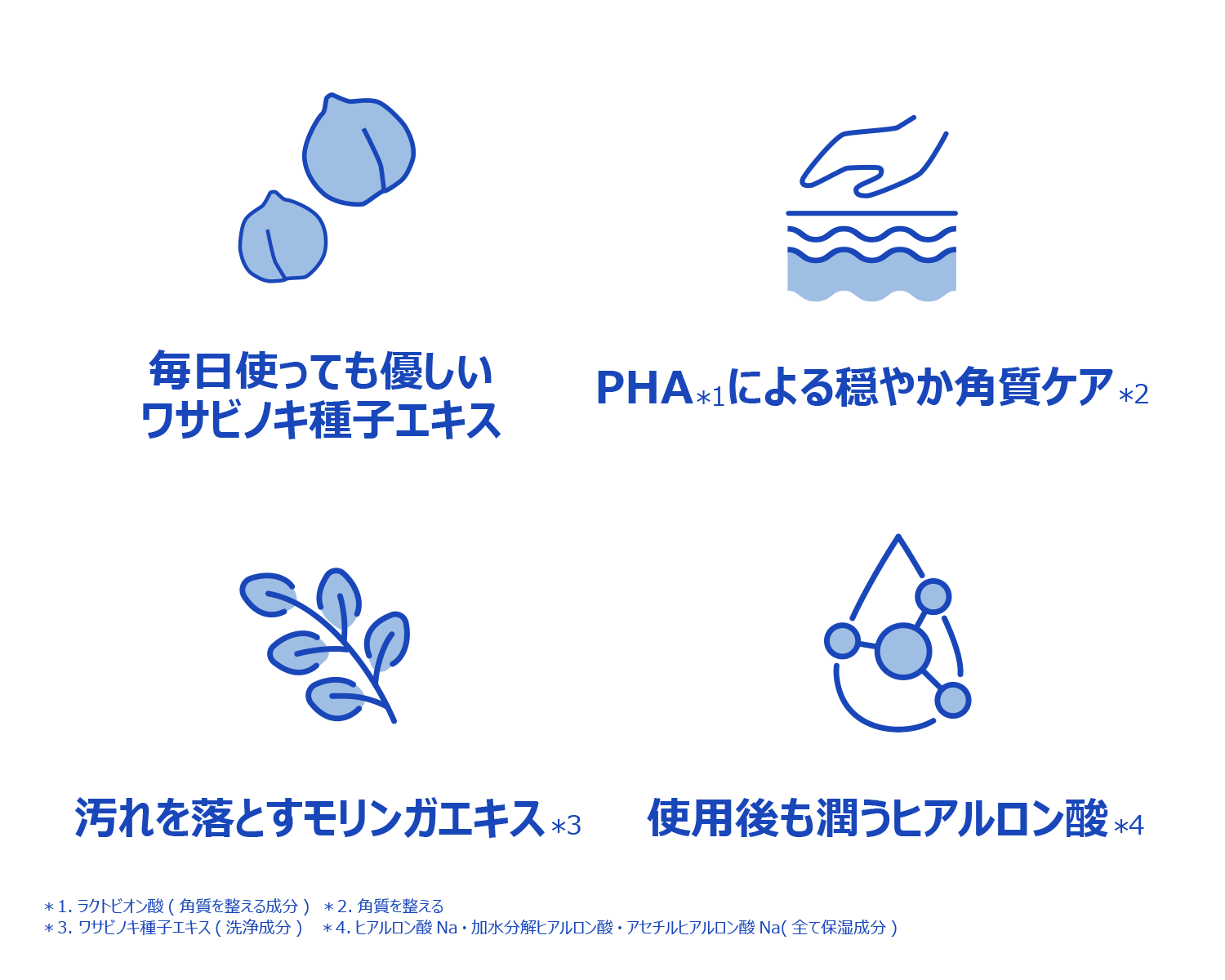 角質除去成分PHA(ラクトビオン酸)が角質をやさしく取り除き、保湿を加えて肌のキメをなめらかに整えます。
