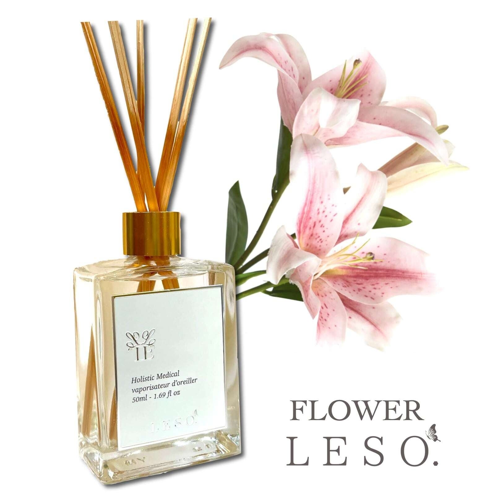 生花の百合は非常に香りが強く、狭い室内では圧倒されてしまうこともあります。レソンシエルジャポンの製品なら、シュッとひと吹きで「今、この瞬間だけ」を花の女王の香りで満たすことができ、場所を選ばずにお楽しみいただけます。