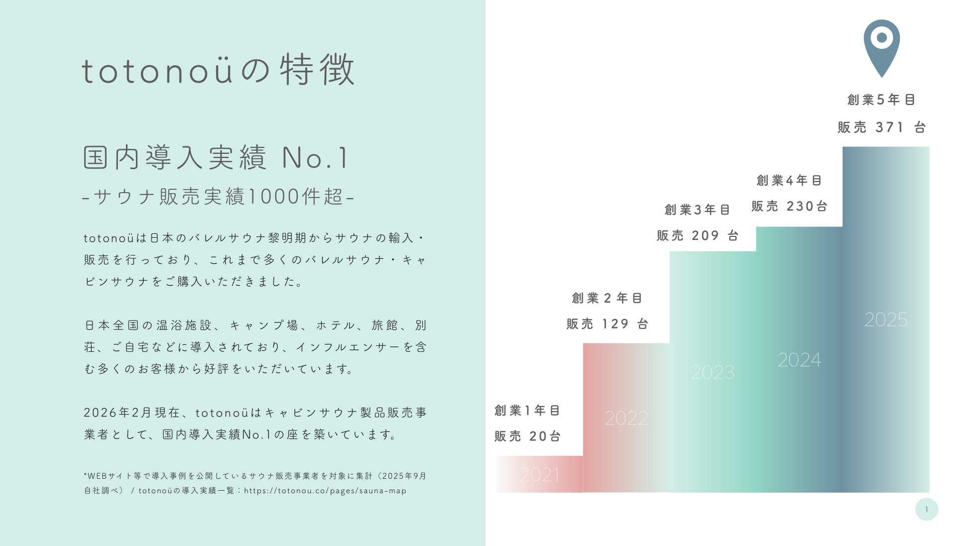 このたび、1000台突破を記念し、過去5年間のサウナ導入事例と近時の販売実績から分析した最新のサウナトレンドを発表します。