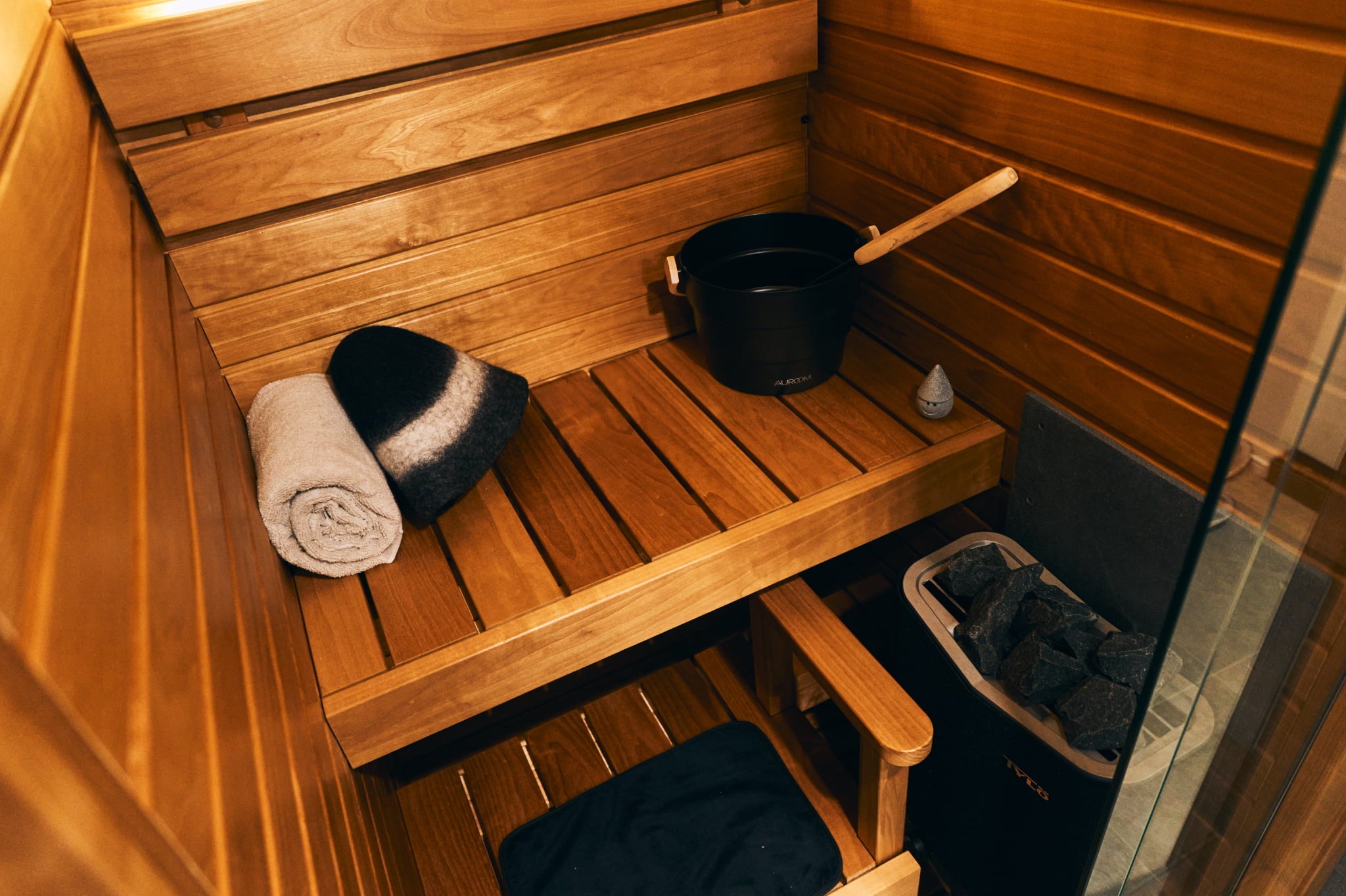 また、ご自宅にも、1台目のサウナとして『Auroom Cala Glass』を、2台目のサウナとしてカスタムオーダーサウナを導入いただいております。