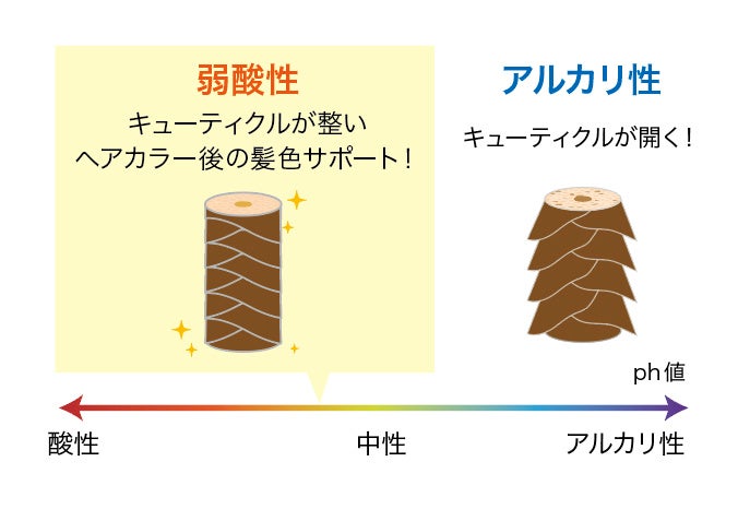 ヘアカラー後にアルカリ性に寄るとキューティクルは開き、染料が流出しやすくなります。