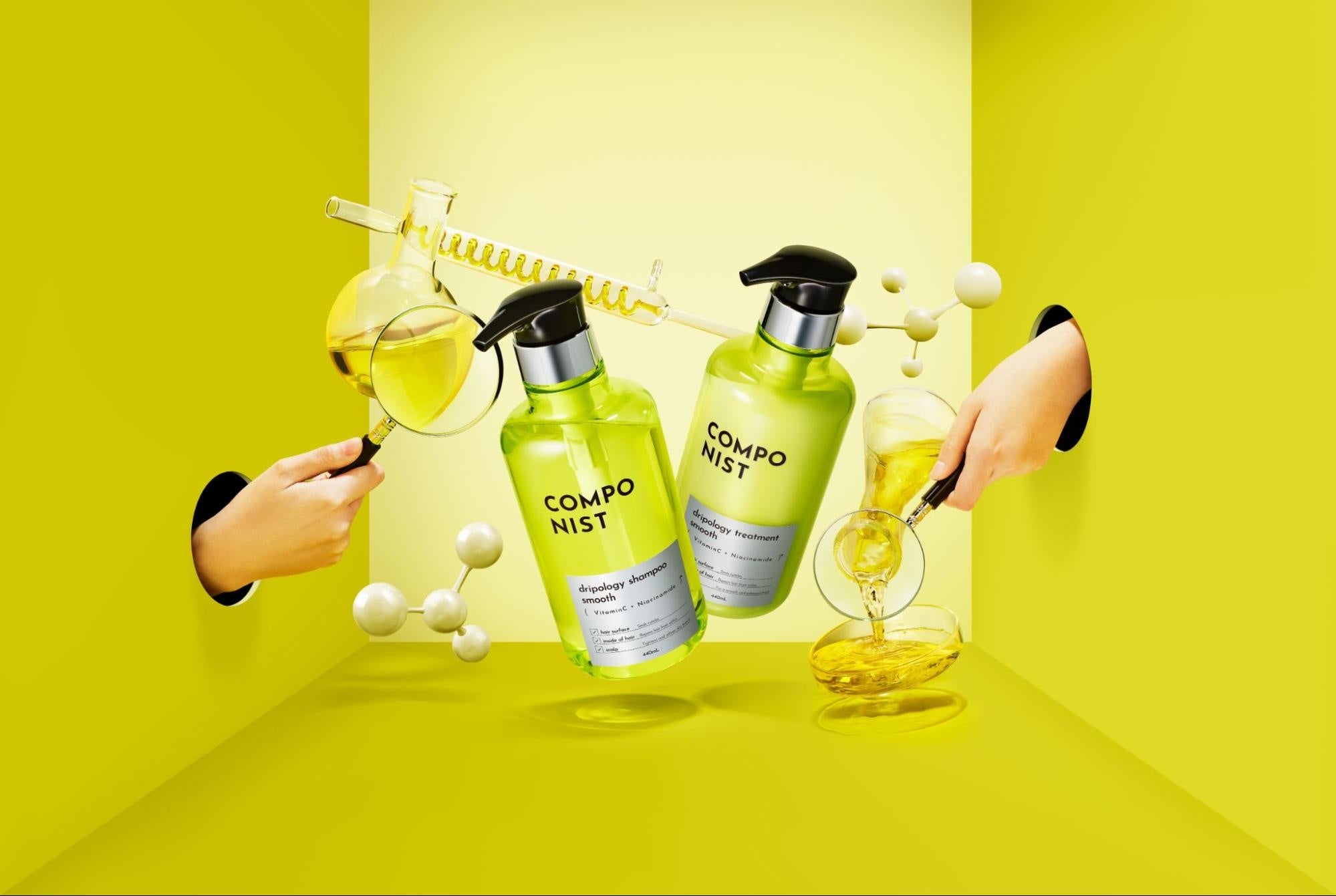 『COMPONIST』は、「あなたの髪未来を、コンポニストが最適設計※1。」をコンセプトに、独自の成分選定と配合術でなりたい髪へ導くヘアケアブランドで、シャンプー、トリートメント、ヘアオイル、ヘアミルクなどの全7アイテムを販売しています。