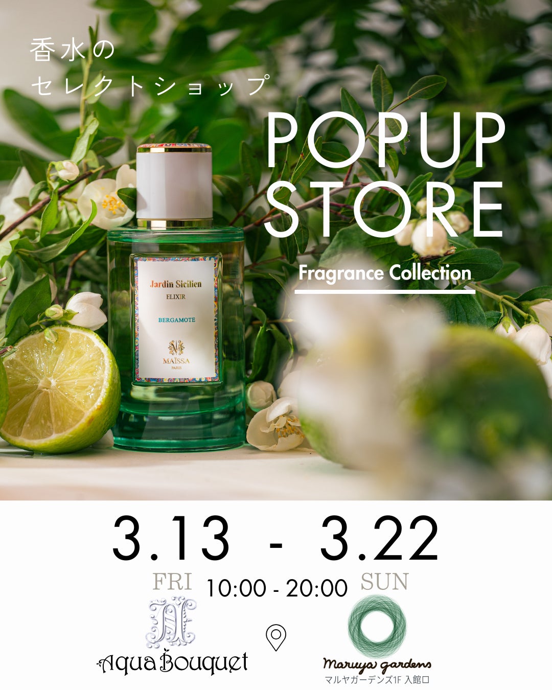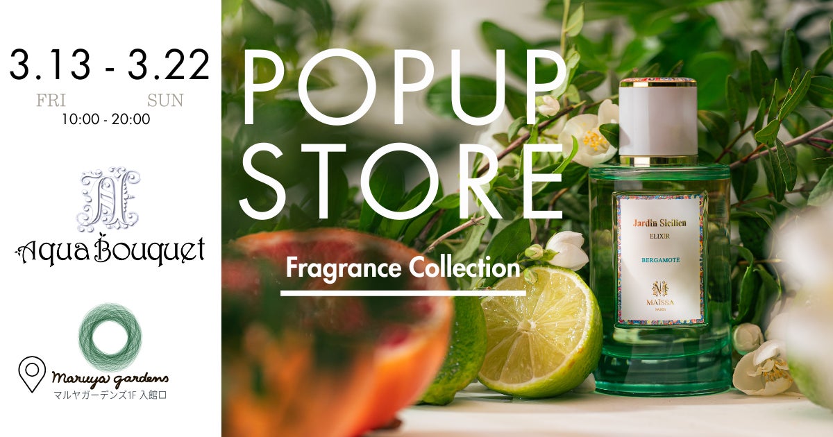 香水専門店「アクアブーケ」を運営する有限会社ユーロエージェント(本社:熊本県熊本市中央区下通2-7-31)は、2026年3月13日(金)より、鹿児島・マルヤガーデンズ1F 正面玄関 特設会場にて、期間限定POPUPストア「アクアブーケ POPUP STORE」をオープンいたします。会期は2026年3月22日(日)までの10日間です。