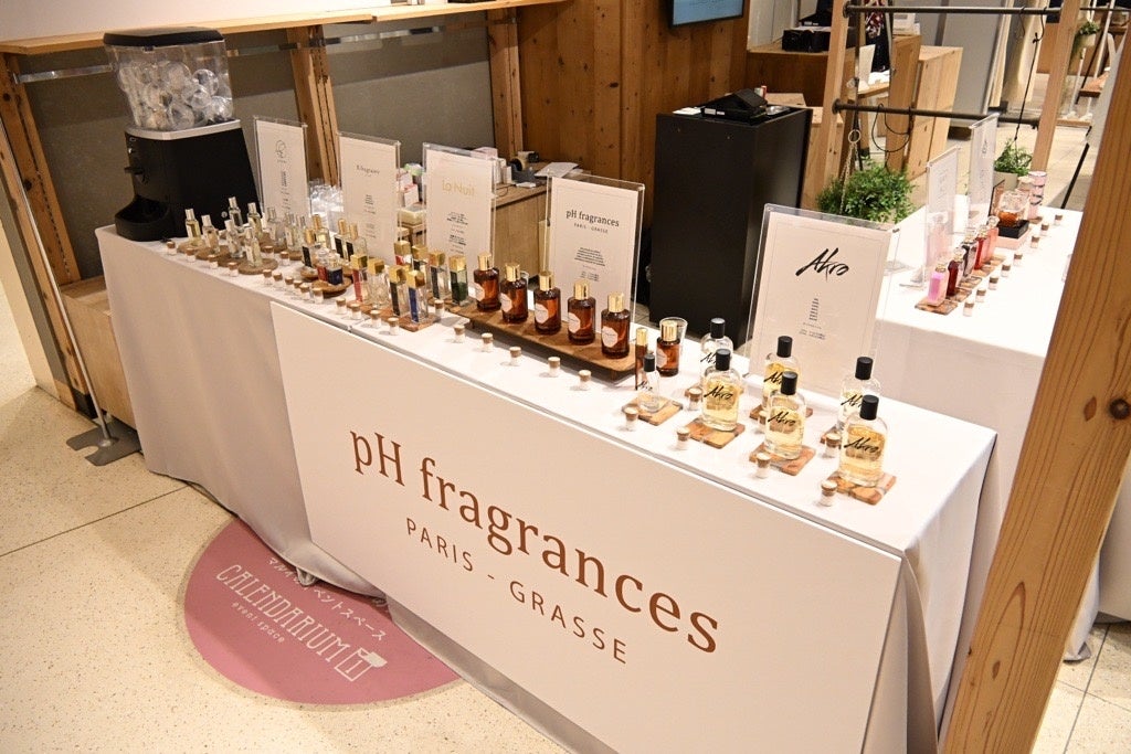 「アクアブーケ POPUP STORE」では、フランス発のラグジュアリーフレグランスブランド Maison Maïssa(メゾン マイッサ)、pH Fragrances(ピーエイチ フレグランス) を中心に、国内ブランドR fragrance(アールフレグランス)、 canoma(サノマ)、La Nuit(ラ ニュイ) など、香りの個性が際立つラインナップを取り揃えます。