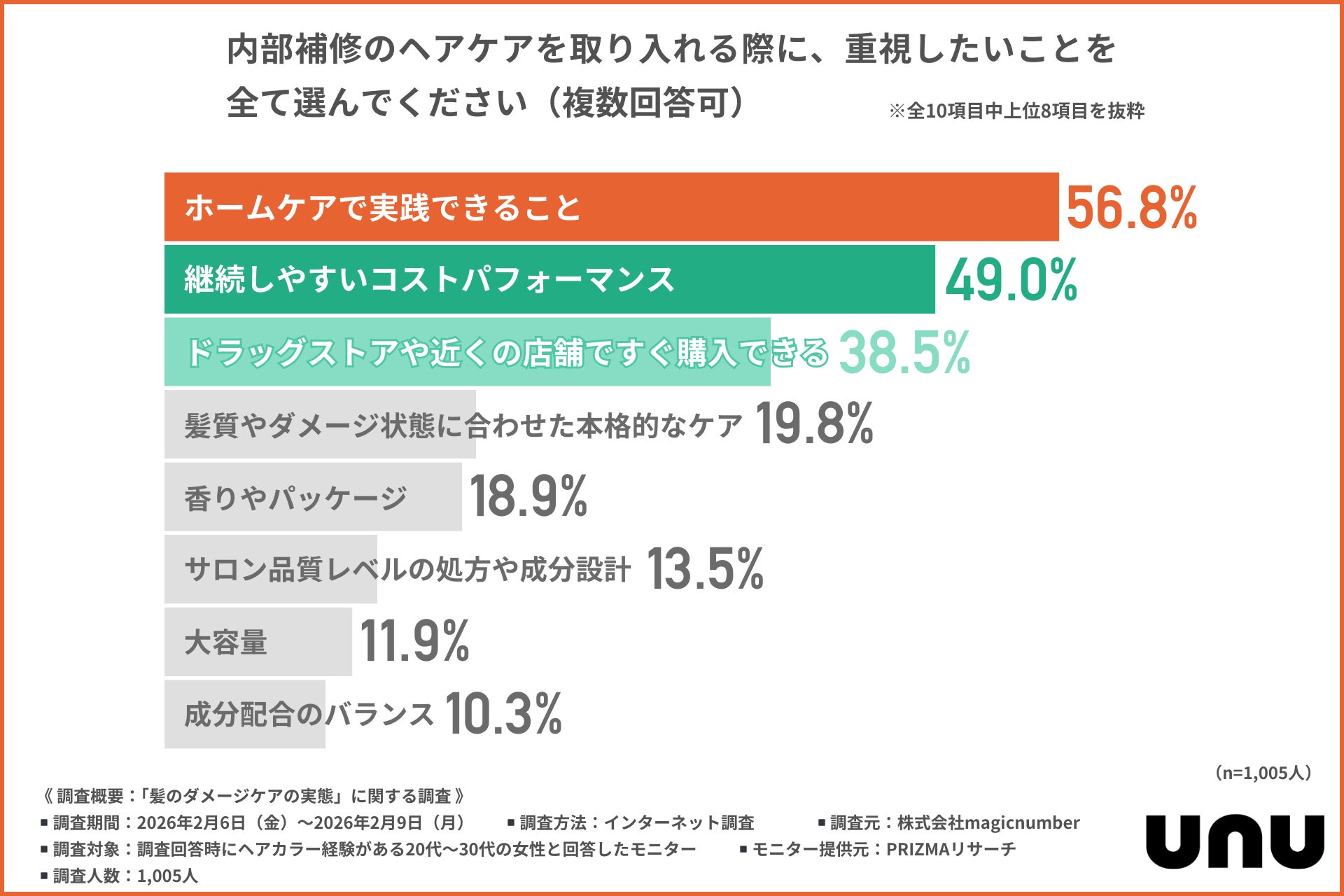今回、「髪のダメージケアの実態」に関する調査を実施した株式会社magicnumber(https://magicnumber.co.jp/)は、日々のダメージから髪を守り、髪内部から補修するヘアケアシリーズ「unu(ウヌボレグロッシー)」(https://unuborero.com/)を展開しています。