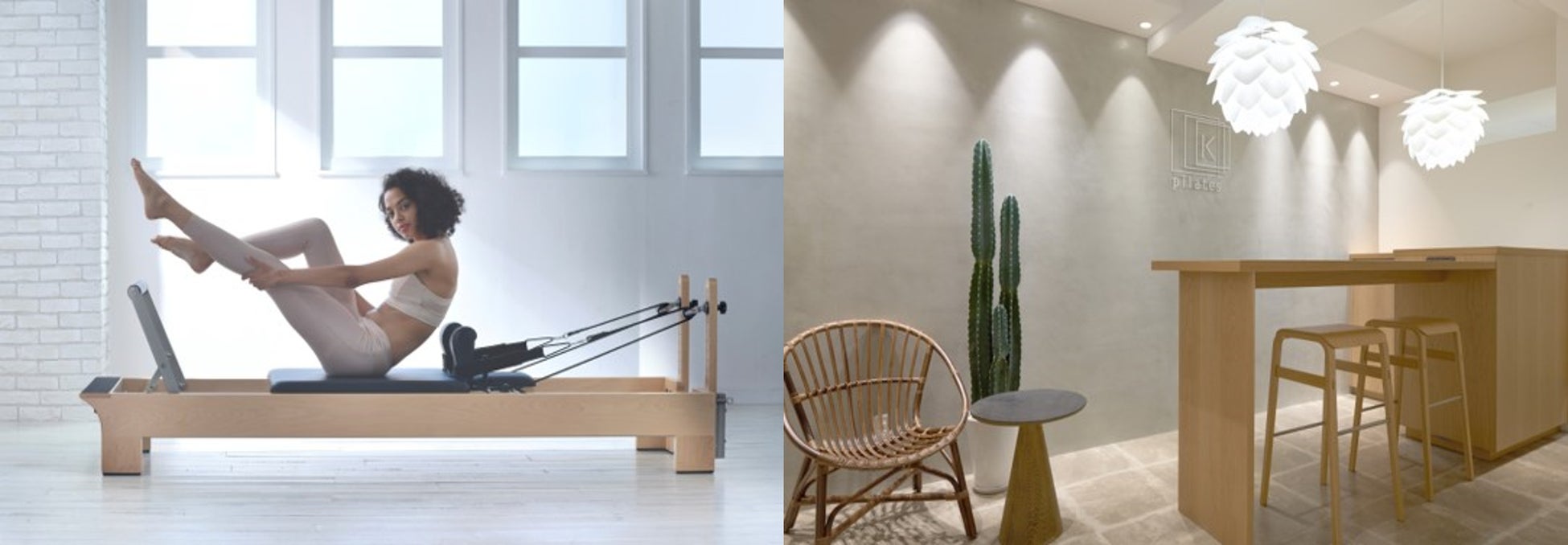 pilates Kは、「30歳からの本気ボディメイク」をコンセプトに、ピラティス専用マシン「リフォーマー」を使用し、音楽に合わせながらグループレッスンを提供するスタジオです。