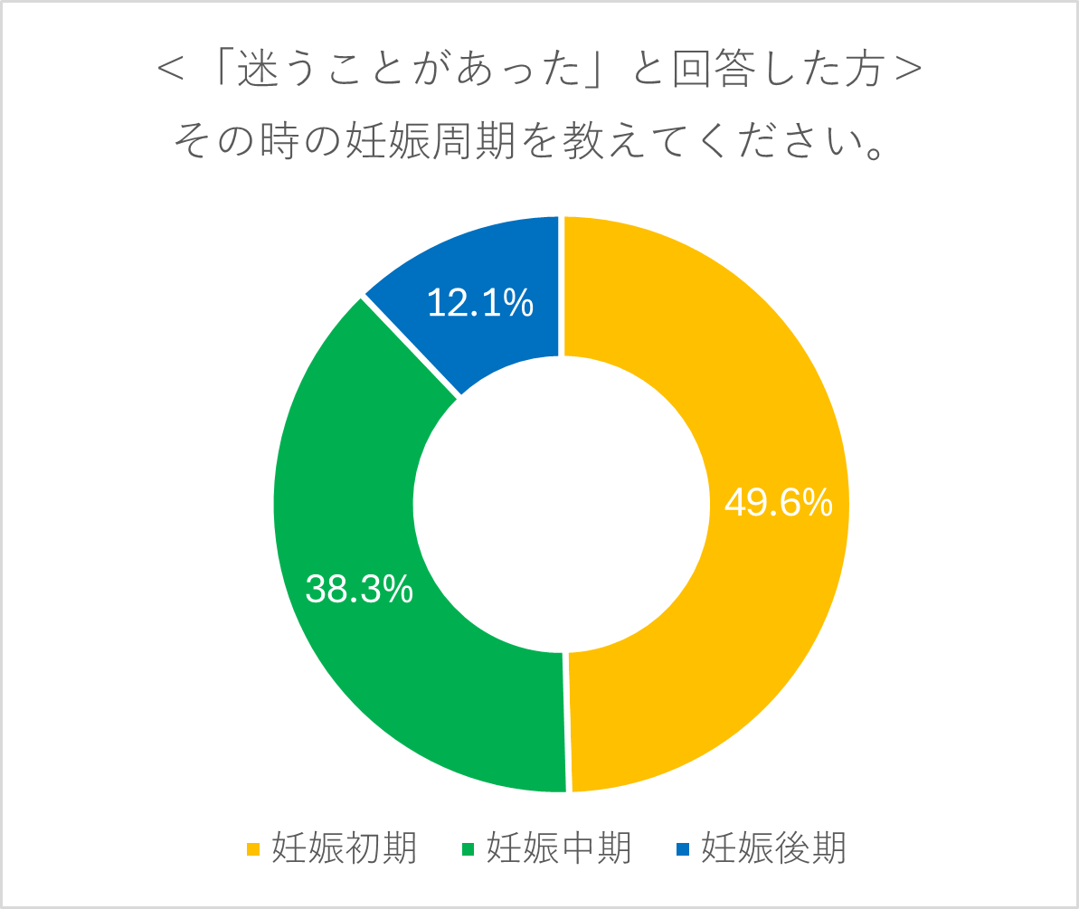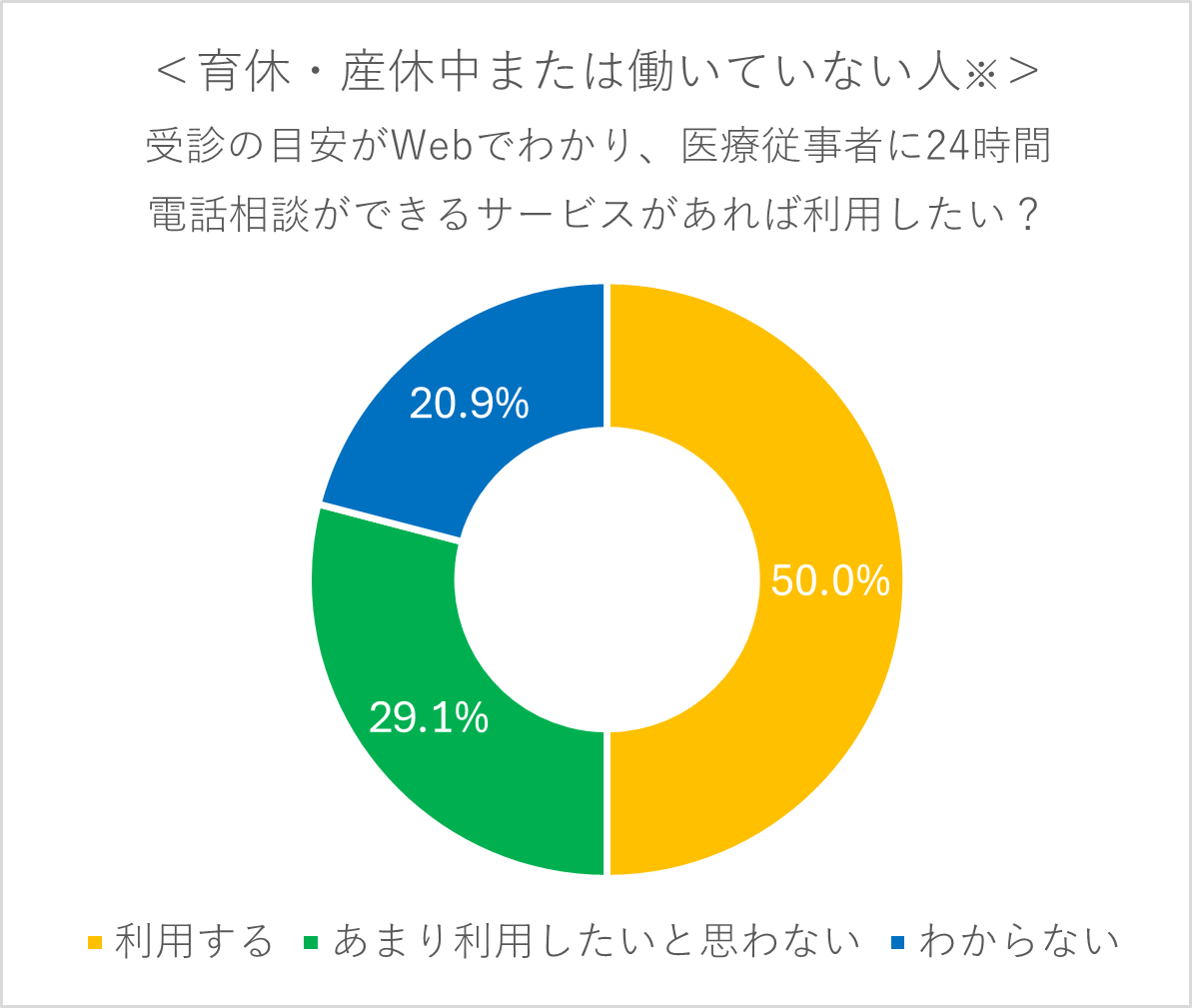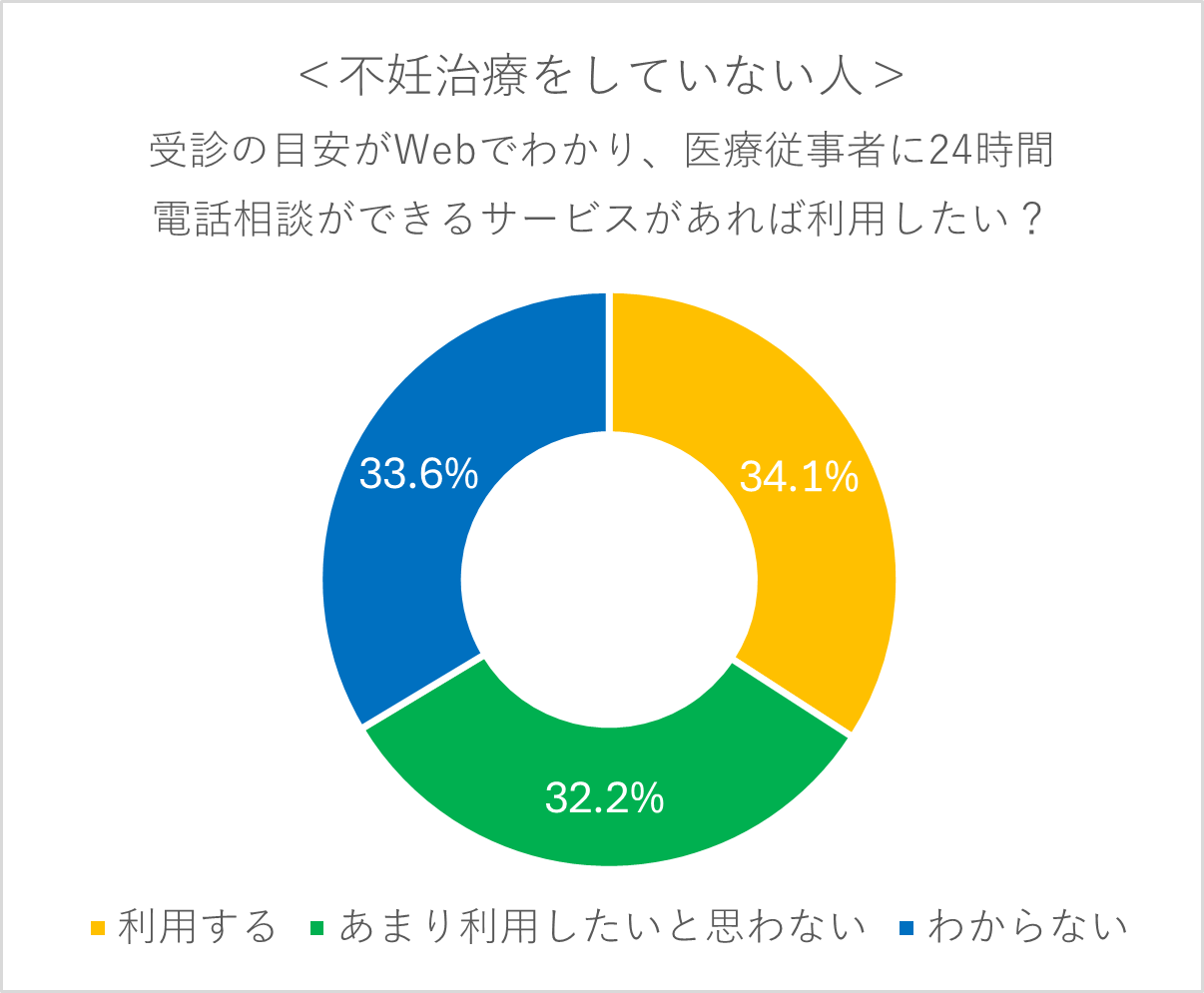 また、受診の判断を迷ったときに働いていたと回答した65.3%が24時間相談窓口を求めているという結果からは、平日の日中に時間的な余裕がないことが背景にあると考えられます。さらに、不妊治療経験者のニーズの高さ(50.7%)は、妊娠前から情報収集や各種治療を経ているため、“妊娠”と向き合う時間の長さや情報過多による精神的な不安より「受診判断のサポート」「ちょっとした不安も聞いてほしい」などの慎重で不安を抱えやすい心理状態にあることがうかがえます。