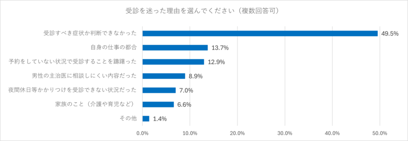 ・ 受診を迷った理由(複数回答)では、「受診すべき症状か判断できなかった」が最多