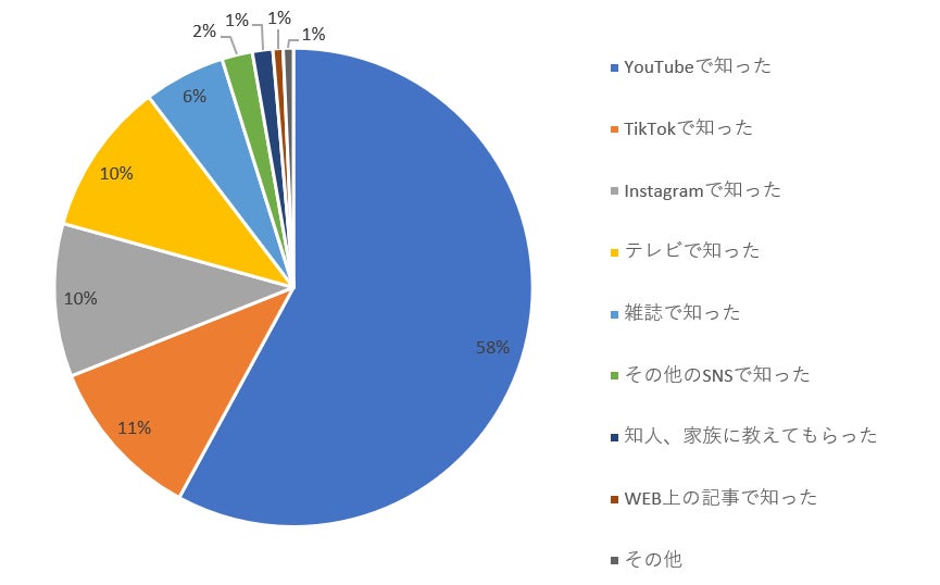 YouTubeが58%と半数以上、つづけてTikTokが11%、Instagramが10%という結果になっています。これは約8割の人が、小田切ヒロさんをYouTubeやSNS経由で認知したことを示しています。