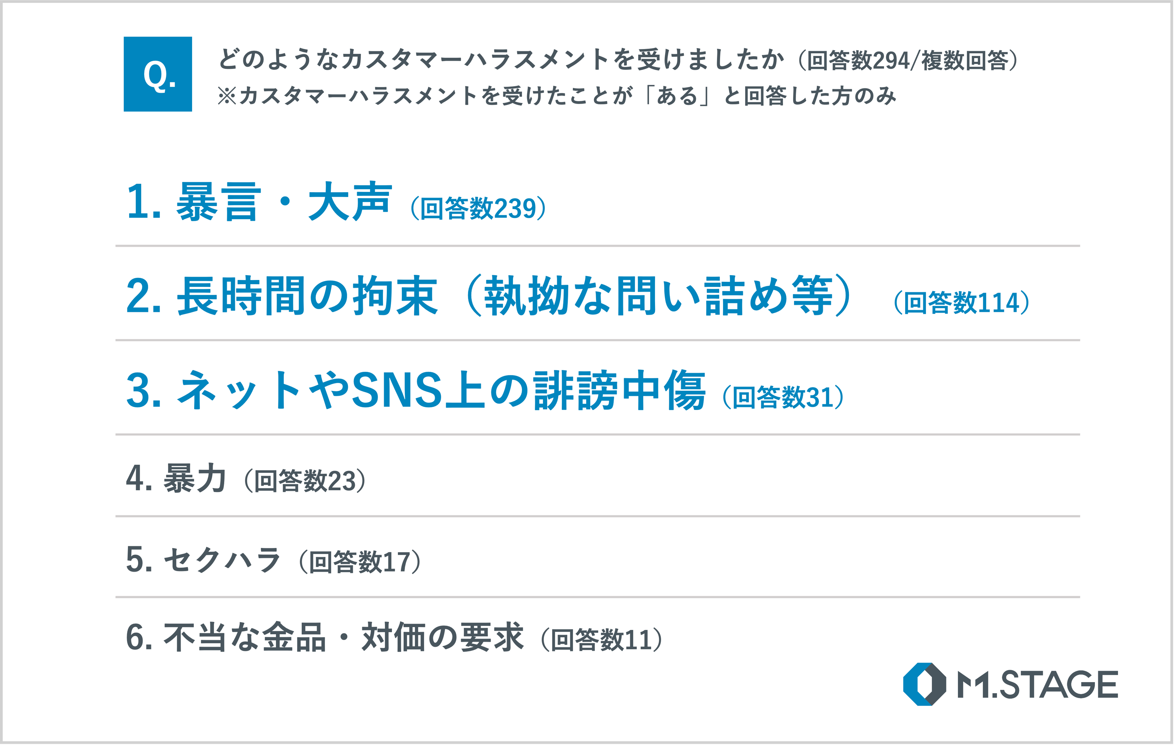 Q. 実際に受けた、職場で目にしたカスタマーハラスメントで、