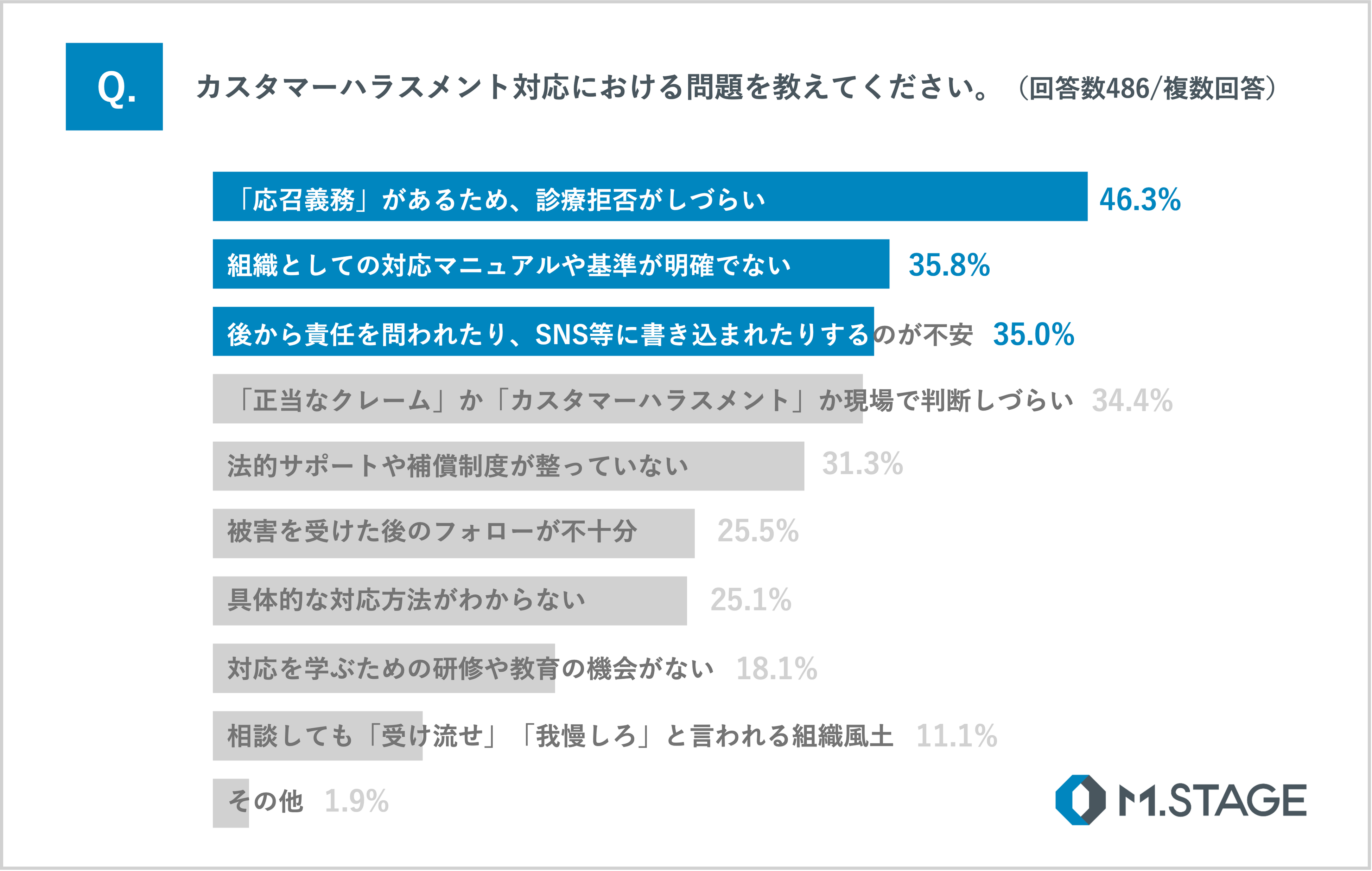 医療人材総合サービス、事業場向け産業保健支援を提供する株式会社エムステージ(東京都品川区、代表取締役:杉田雄二)は、エムステージが運営する『Dr.転職なび』『Dr.アルなび』の登録医師のうち486名に「カスタマーハラスメント」に関するアンケート調査を実施しました。