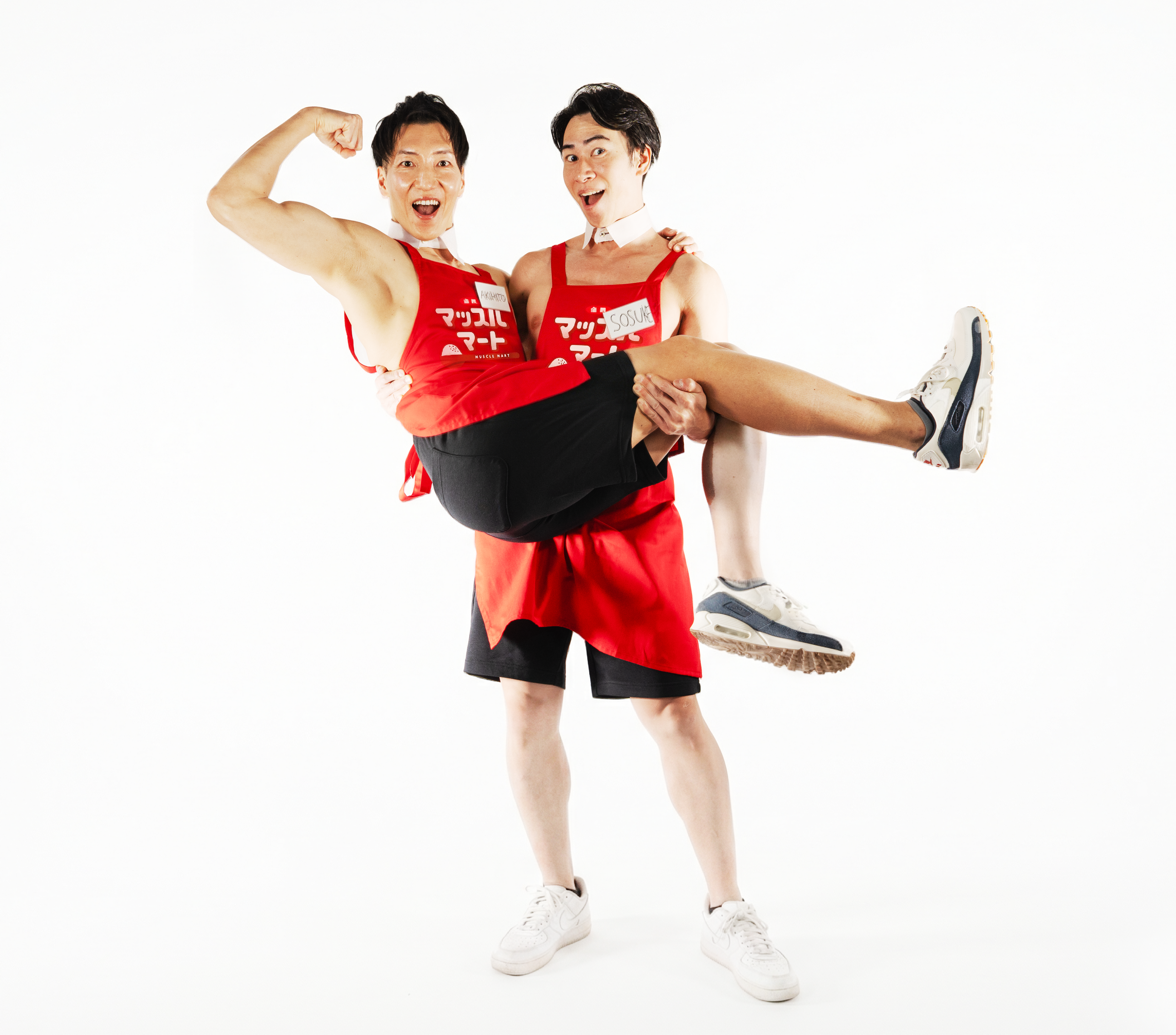 店員として接客にあたるのは、前回の「マッスル・ベーカリー」でも大きな反響を呼んだ、筋肉紳士集団「ALLOUT(オールアウト)」のメンバーです。上半身裸に「マッスルマート」オリジナルエプロン一枚を纏った、その鍛え抜かれた肉体美は圧巻の一言。入店時の「いらっしゃいマッチョ!」という威勢の良い挨拶をはじめ、明るくエネルギッシュなパフォーマンスを通じて、スキムミルクの魅力を全力でアピールします。
