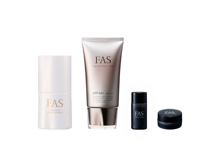 FAS ザ ブラック ブライトセラム Ⅱ【販売名:FBブライトセラムⅡ 医薬部外品】(現品:30mL) FAS ザ ブラック デイ クリーム【販売名:FDクリーム 医薬部外品】(現品:40g) FAS ザ ブラック エッセンス(ミニ:10mL) FAS ザ ブラック クリーム【販売名:Fクリーム 医薬部外品】(ミニ:5g) |
