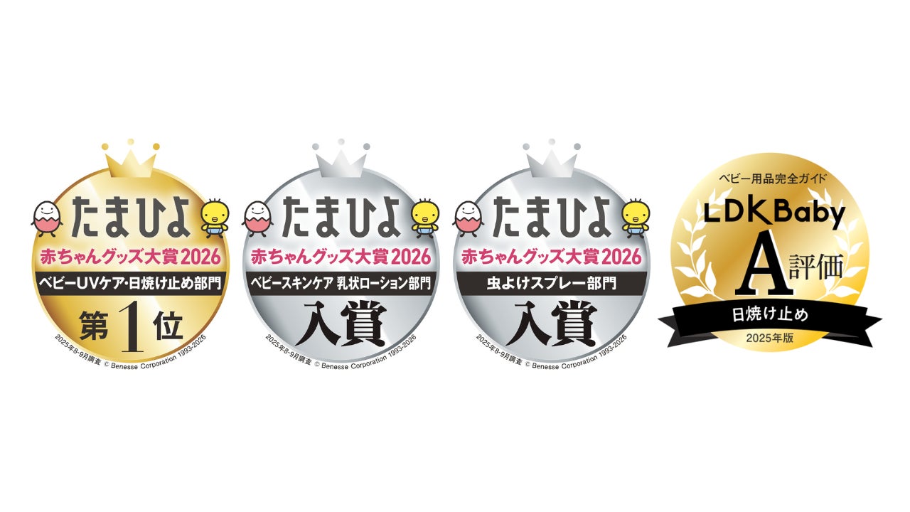 これまで、たまひよ赤ちゃんグッズ大賞(ベビーススキンケア 乳状ローション部門・ベビーUVケア 日焼け止め部門)やマザーズセレクション大賞、LDKベビーA評価(日焼け止め部門)など数多くの賞をいただいております。