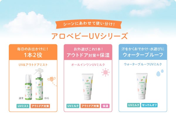 毎日のおでかけやお外遊びに、しっかりUVカットできるSPF28 / PA+++で日焼けを防ぎながら、赤ちゃんのお肌を虫から守り、さらにミルクローションと同様の高保湿成分配合で乾燥をケアできる1本3役です。