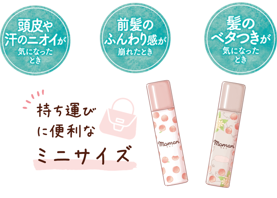 ■モモリ ドライシャンプー2種類の香りから、持ち運びに便利なミニサイズを発売!!