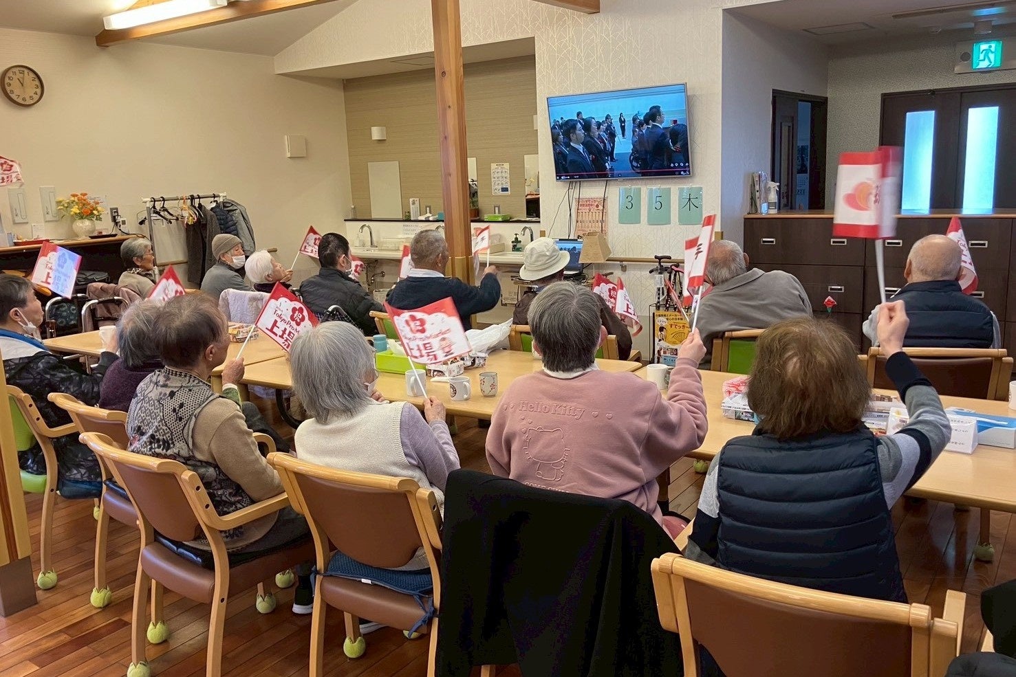 上場当日は、上場セレモニーの様子をライブ配信し、拠点を越えて社員やご利用者様が視聴・参加しました。配信中は、ご利用者様より現場スタッフへの労いの言葉やお祝いのメッセージが寄せられ、拍手が起こるなど、会社全体で節目を分かち合う一日となりました。