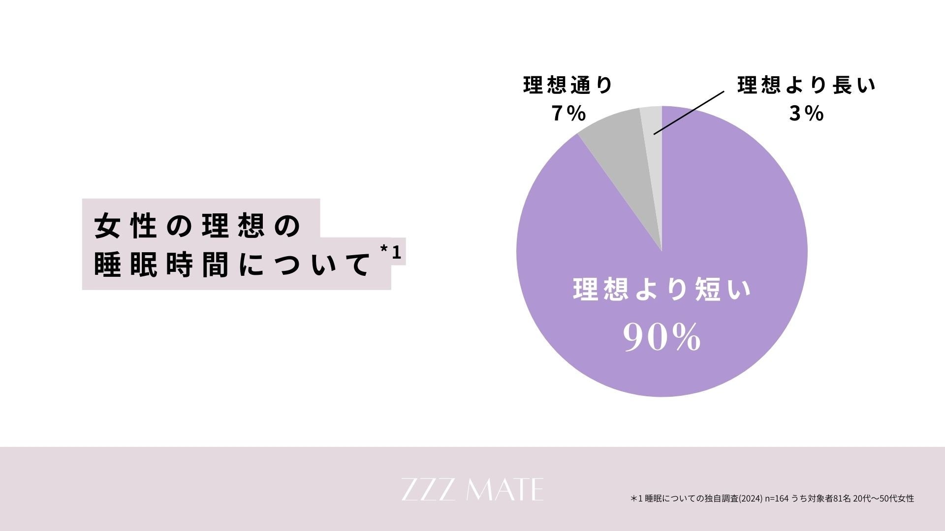 現代の日本女性、特に30〜50代は理想の睡眠時間を確保できていない現状があります。代表の鈴木が休養士として睡眠の大切さを発信する中で見えてきたのは「自ら改善に向けて行動し、効果を感じている人は半数以下である」という現実でした。
