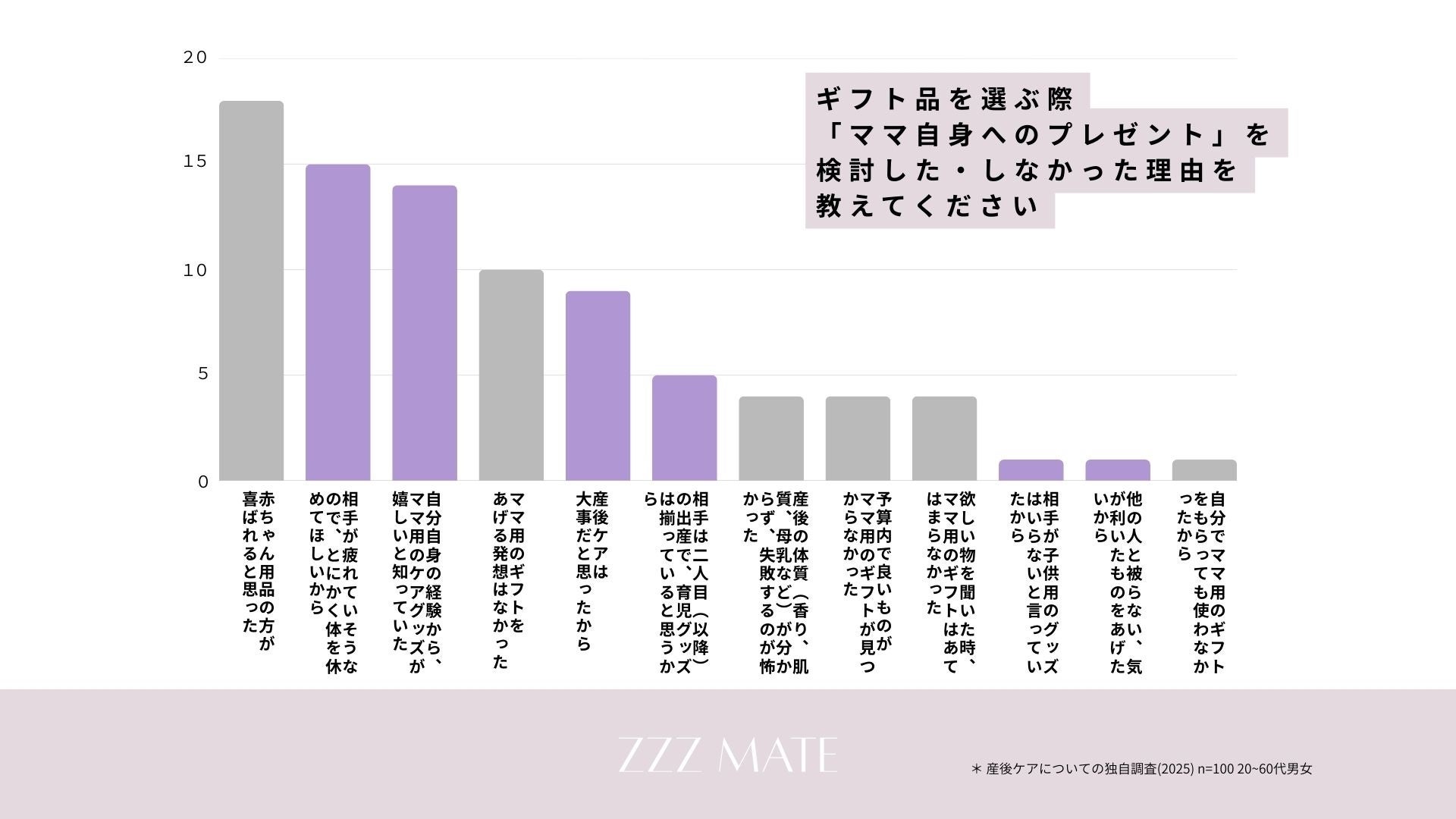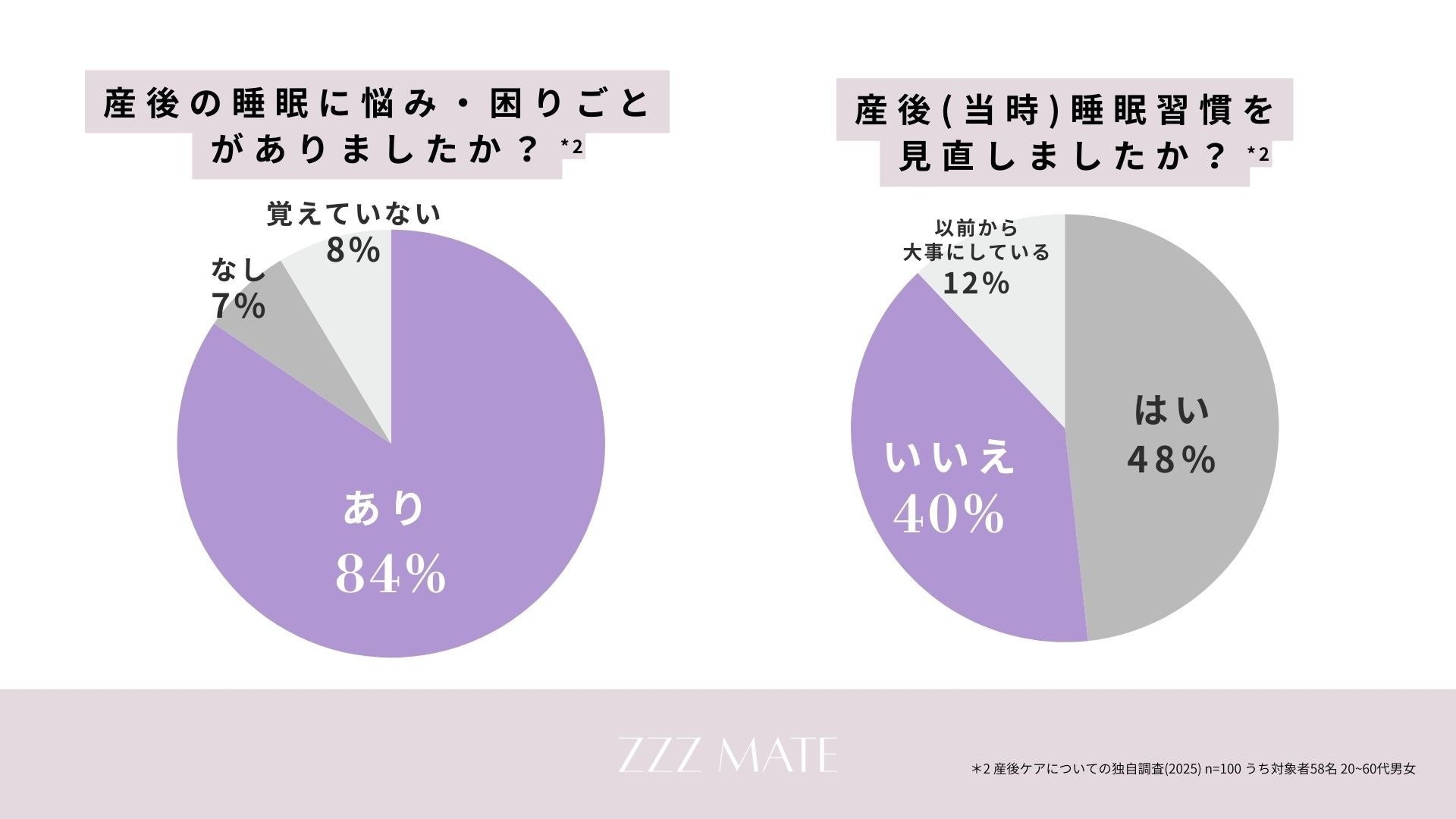 特に産後は、84%が睡眠に悩みを抱えながらも、約4割が具体的な見直しに至っていません。「自分のことは後回し」が美徳となり、情報の負荷や商品選びのストレスに耐えられないほど疲弊した状態にある方へ。zzzMateは「自分で頑張る」のではなく「大切な人から休息のきっかけを受け取る」というギフトの形を選択しました。