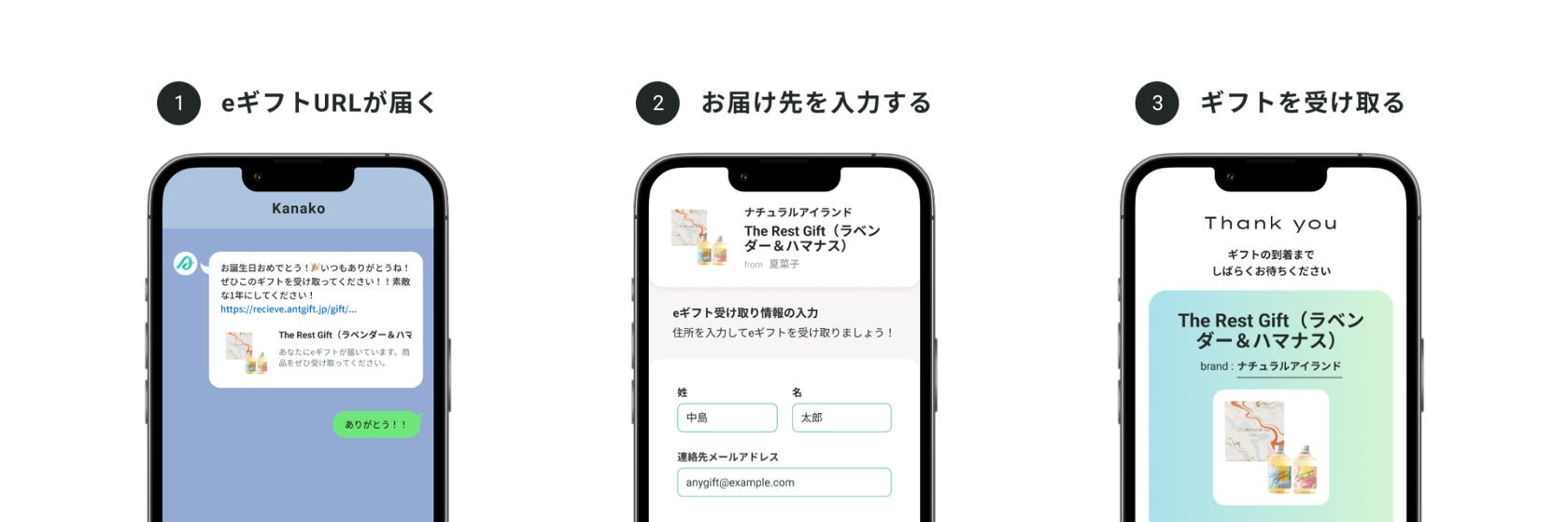 3)入力したお届け先に、eギフト商品が配送されます。