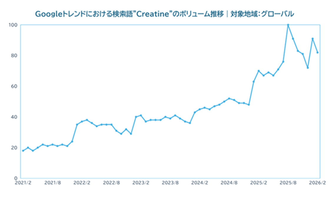 クレアチンに関する研究は長年蓄積されており、海外では一般生活者の利用が広がっていることから、日本でも関心が高まる可能性があるかもしれません。また、近年は運動領域以外についても研究が進んでおり、今後の知見の広がりが注目されている成分の一つです。