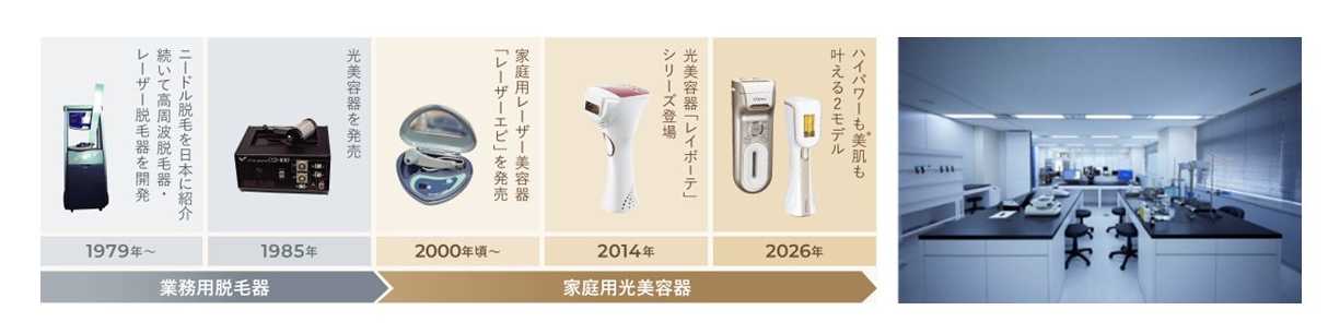 1978年の設立以来、精密電子機器メーカーとしての技術開発基盤を背景に業務用美容機器からはじまり家庭用美容機器へと、美容機器専門メーカーとして革新的な製品をつくることに全力を注いできました。「美しくを、変えていく。」をスローガンに掲げ、これからも先端テクノロジーと常識を変えるアイデアで、美しくなる夢や驚きをお届けしていきます。