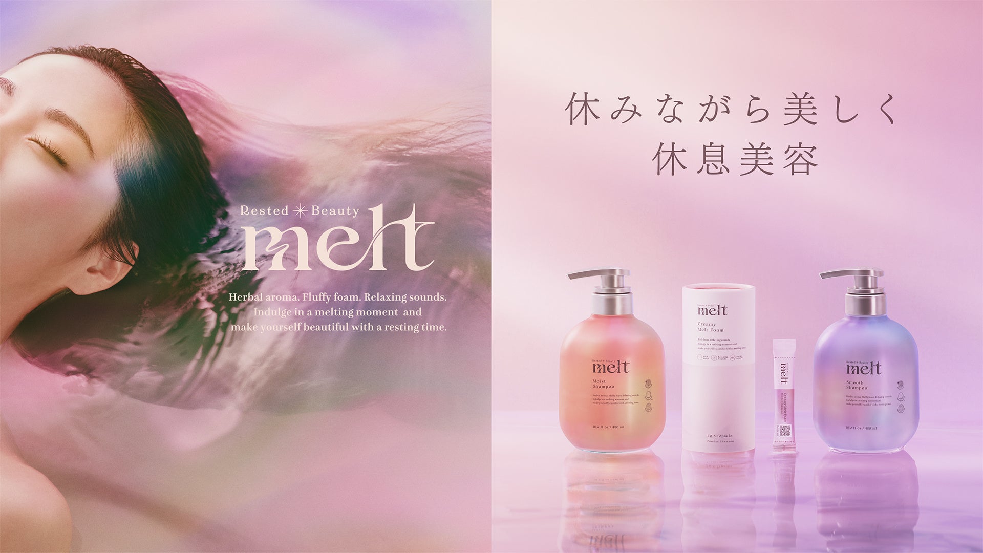「melt」は、休みながら美しく“休息美容”をブランドコンセプトとし、2024年4月に発売したヘアケアブランドです。音・泡・感触・香りでさまざまな感覚にはたらきかけ、ヘアケアタイムを「自分を大切にする時間」に変える提案が支持され、発売以降の累計出荷本数が700万本*を突破。より多くのお客さまに、休みながら美しくなるという“休息美容”の価値をお届けしています。