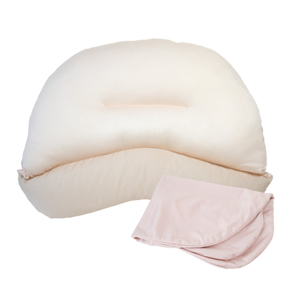 特殊な形をした枕のため、サイズを合わせた専用の枕カバーも単品で販売中です。頭部分と同じマシュマロ生地で作られているため、カバーを付けてももちもちとした感触はそのままに、やさしい肌触りでお使いいただけます。