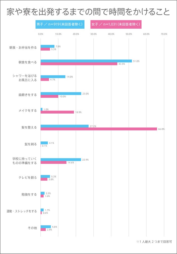 男子より女子の方が早く起床する傾向! 家を出発するまでに何に時間をかけているのか!