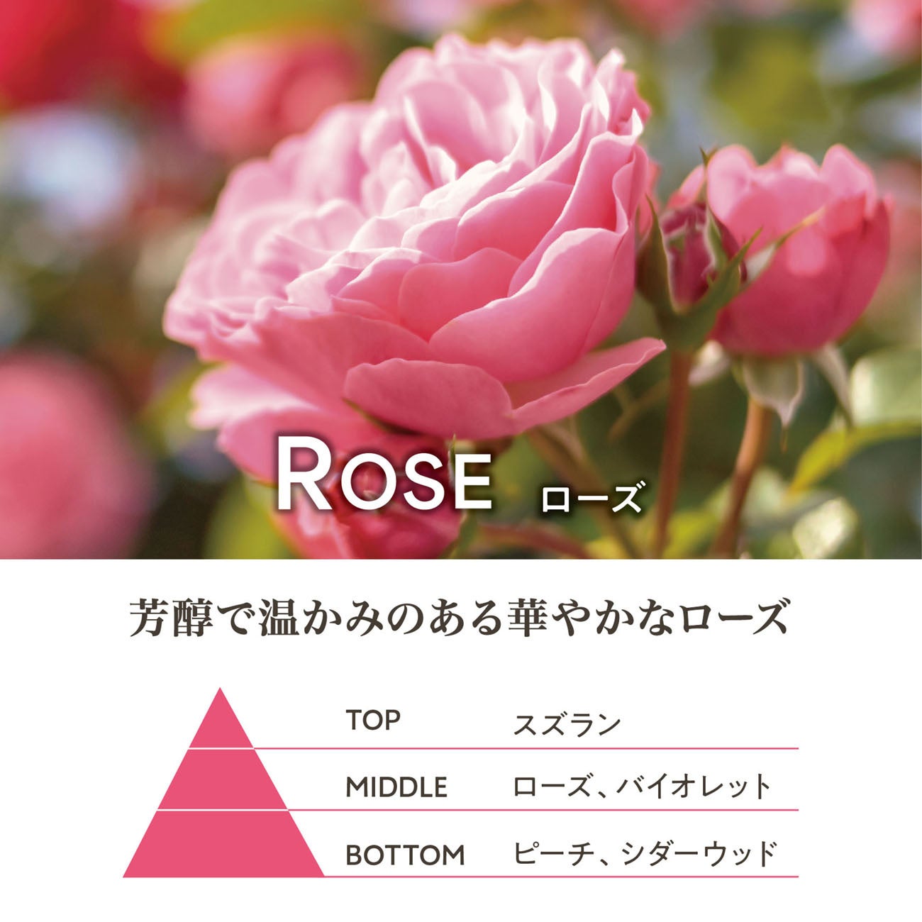 愛の象徴であるローズ精油の芳醇で愛情あふれる華やかな香り