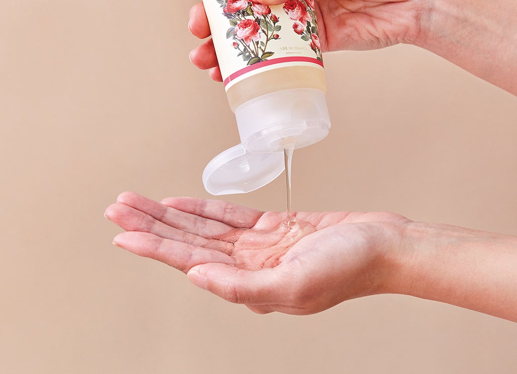 シアオイル(シア脂)とグリセリンを配合し、軽やかな泡立ちで肌を守りながらすっきりと洗い上げます。精油の香りが華やかに広がります。