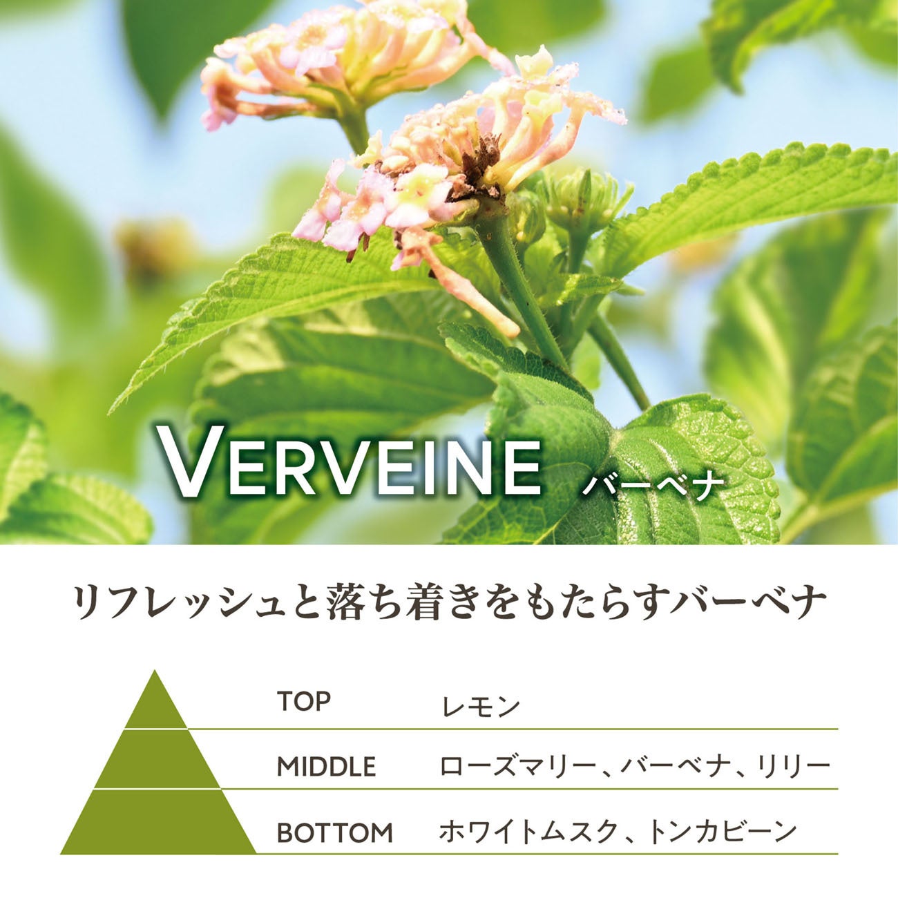 爽やかなバーベナ精油がリフレッシュと落ち着きをもたらす心地よい香り