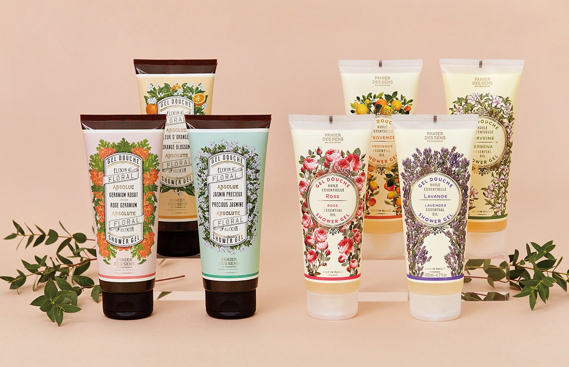 『パニエデサンス』を代表する2つのコレクション、貴重な植物香料“アブソリュート”を使い華やかに香る「アブソリュート」と、プロバンスを体現する植物の精油をふんだんに使ったフレッシュな香りの「エッセンシャルズ」。それぞれのみずみずしいアロマ香るシャワージェルが全7種揃いました。