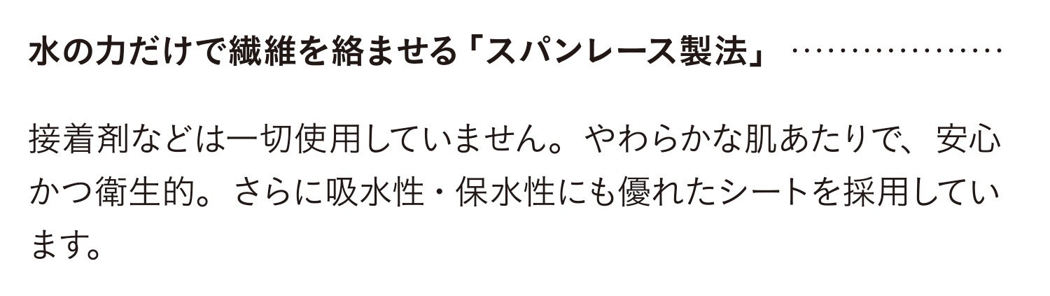 毎日使うもだからこそ、肌へのやさしさを追求。自社旧品よりシートを約128%厚くすることで、より肌あたりのやわらかいシートが完成しました。
