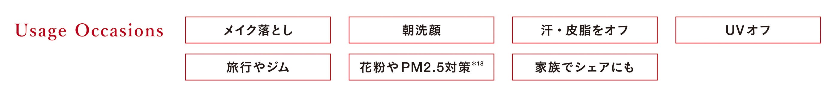 *1 ポリクオタニウム-51<保湿成分> リピジュアは日油株式会社の登録商標です *2 肌のキメを整えること *3 乾燥による *4 うるおいによる *5 ウメ果実エキス *6 シイクワシャー果皮エキス *7 ユキノシタエキス *8 マグワ根皮エキス *9 オリーブ葉エキス *10 セイヨウミザクラ果実エキス *11 ハトムギ種子エキス *12 ウンシュウミカン果皮エキス *13 イチョウ葉エキス *14 ミツバアケビ茎エキス *15 アロエベラ葉エキス *16 ヨモギ葉エキス *17 チャ葉エキス *18 肌に付着した花粉やPM2.5をふき取ること