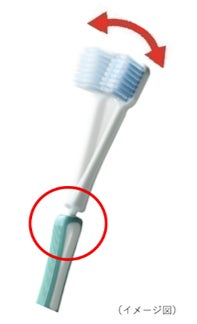 ① 余分な力を吸収し、適切なブラッシング圧を実現しやすくする自動補正ハンドルです。(図1)