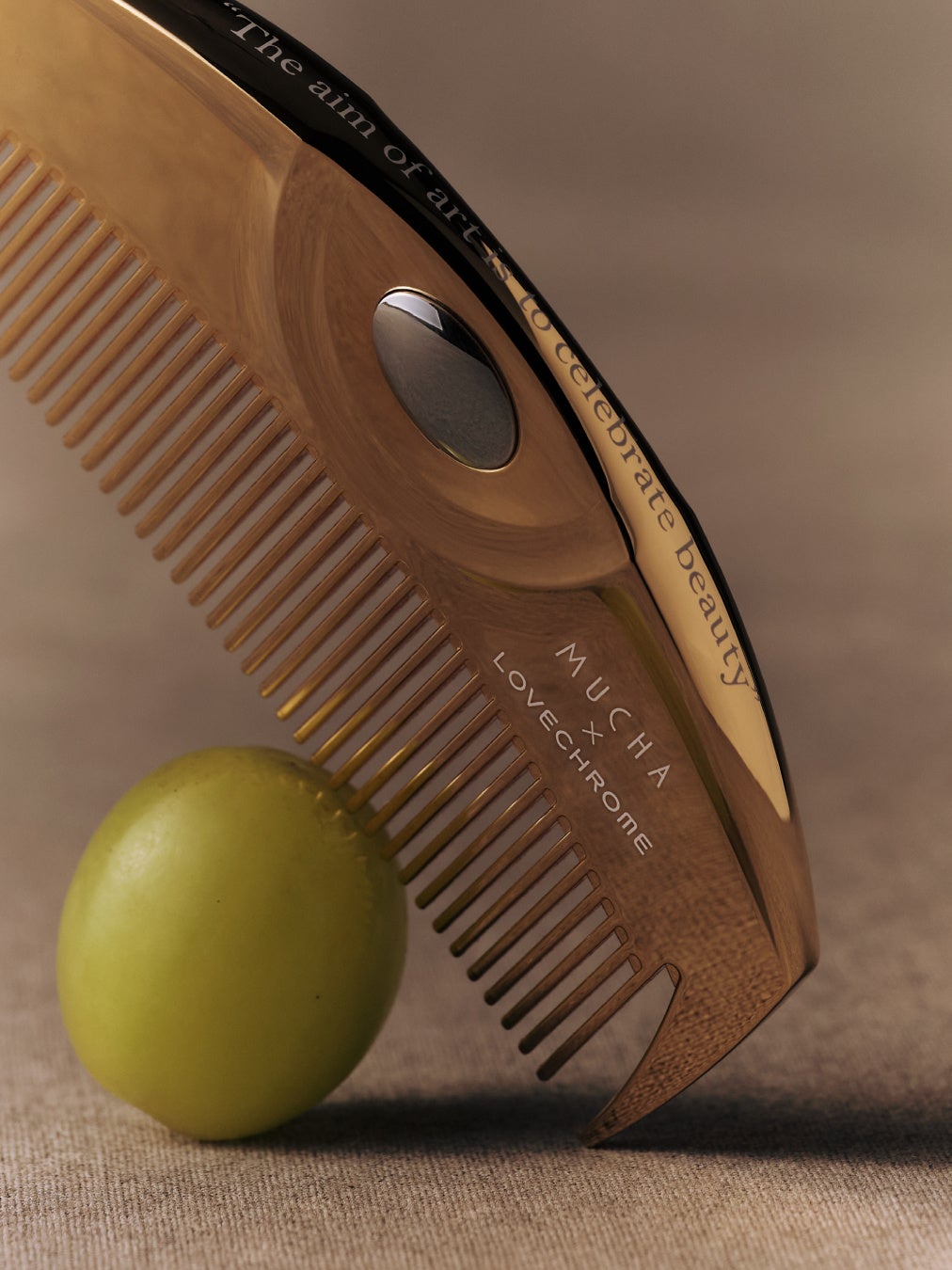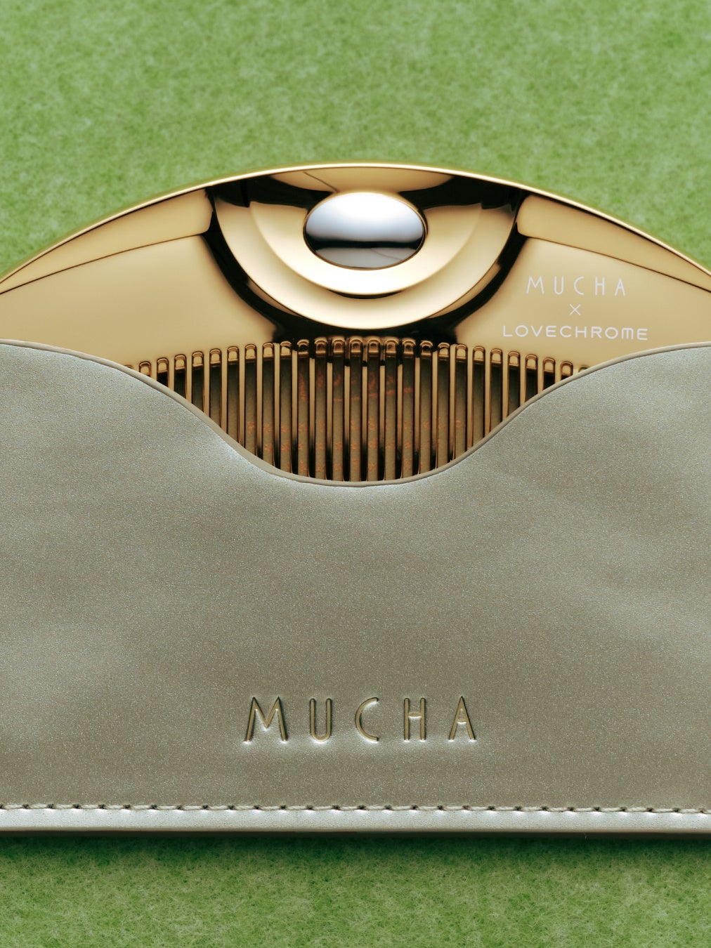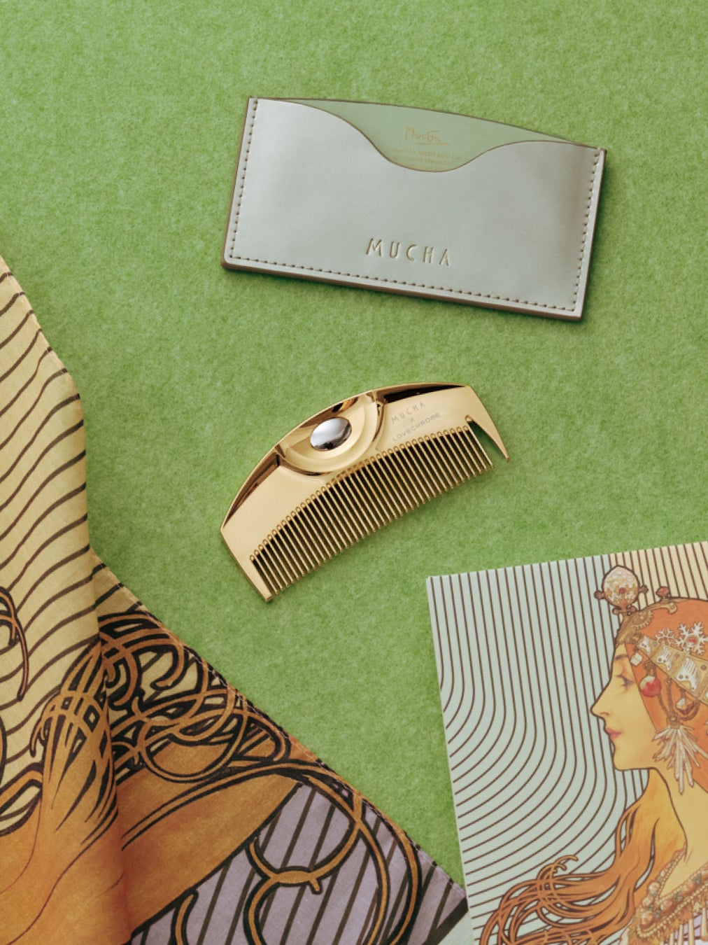 株式会社マッシュスタイルラボ(本社 東京都千代田区/代表取締役社長 近藤広幸)が展開する、芸術家・ミュシャ財団による世界初の公認ブランド「MUCHA(ミュシャ)」は、日本の美髪コームブランド「LOVECHROME®(ラブクロム)」との初のコラボレーションアイテム『MUCHA×LOVECHROME®K24GP TSUKI ヘアコーム』を、2026年3月12日(木)よりMUCHA全店舗およびオフィシャルオンラインストアにて発売いたします。LOVECHROME®の純金加工モデル「K24GP TSUKI」をベースに、ミュシャ作品『ゾディアック』に象徴される流れるような髪の曲線から着想を得たアートをあしらった特別デザインBOXで展開。また同BOXと同アートを使用したハンカチも、MUCHAのアイテムとして同日発売いたします。