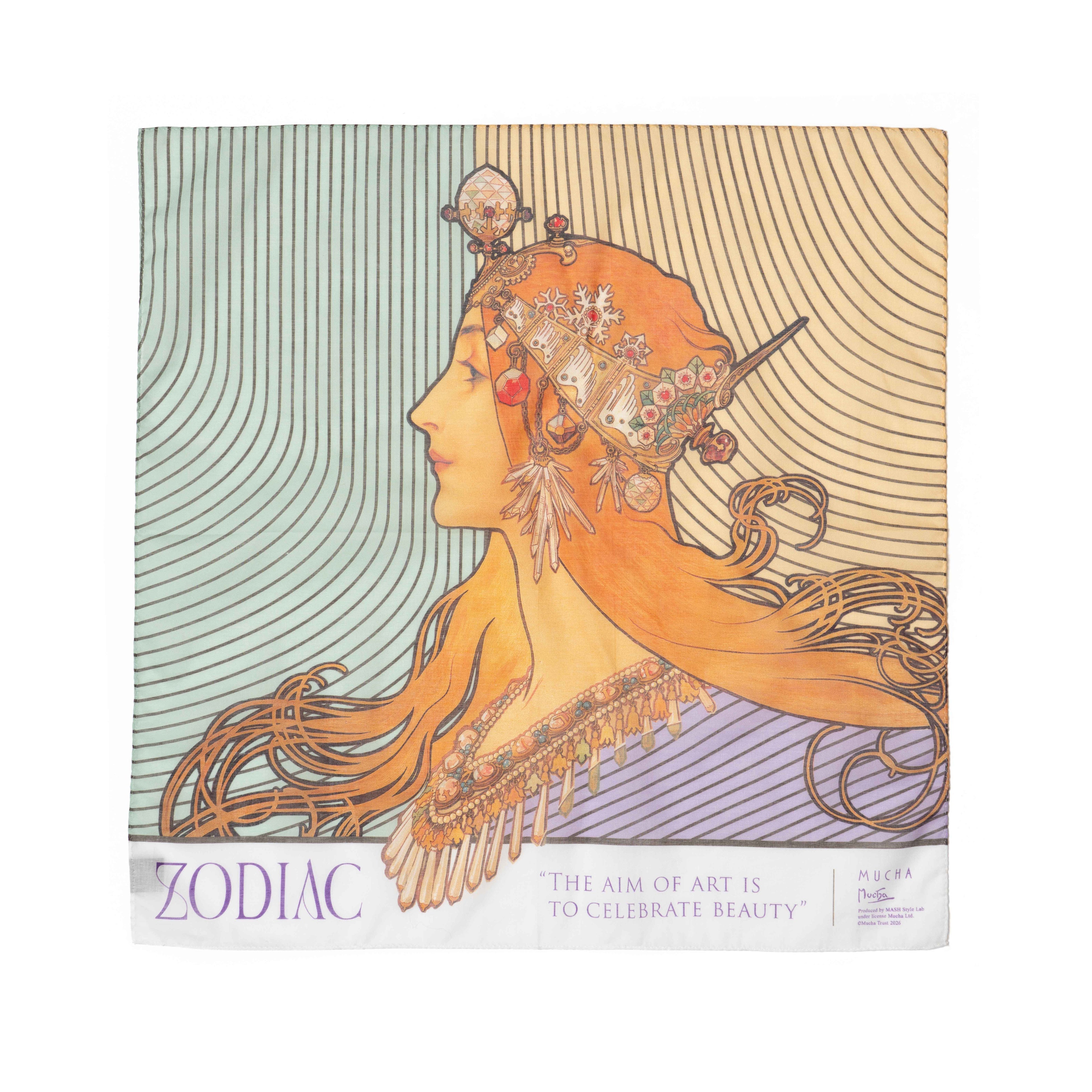 アール・ヌーヴォーを代表する画家ミュシャの作品『ゾディアック』。その象徴である流れるような髪の曲線と、日本庭園を思わせる静謐な曲線を融合させたデザイン。