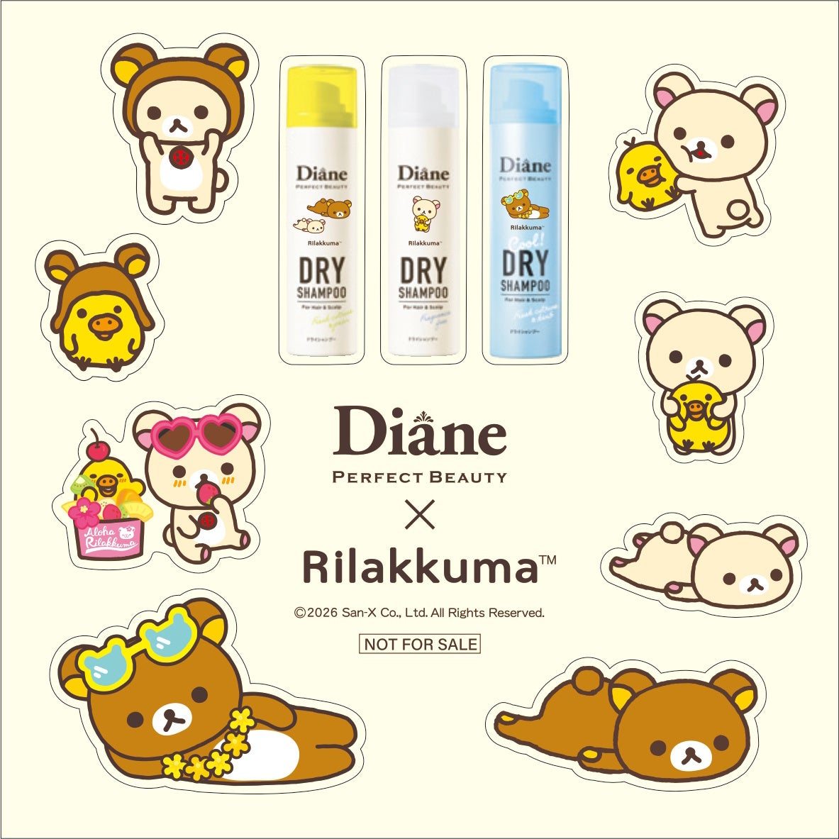 本コラボレーションでは、ダイアン パーフェクトビューティーの人気ドライシャンプーをベースに、リラックマの世界観を落とし込んだ限定オリジナルデザインパッケージを採用。忙しい朝や外出先、リフレッシュしたいひとときに、思わず手に取りたくなるような、やさしく癒されるデザインに仕上げました。