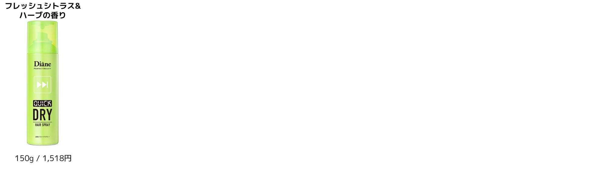 いつでもどこでも使える、リフレッシュハーブエキス配合のダイアン ドライシャンプーは、微粒子パウダー※1で頭皮の余分な皮脂や汗を吸収し、ベタつきをスッキリさせることができるため、髪も頭皮もサラッとリフレッシュしたい時には必携のアイテムです。汗や皮脂による髪のべたつきを抑え、スプレータイプで心地よいリフレッシュ感で肌を引き締め、気になるニオイも抑制 ※2します。