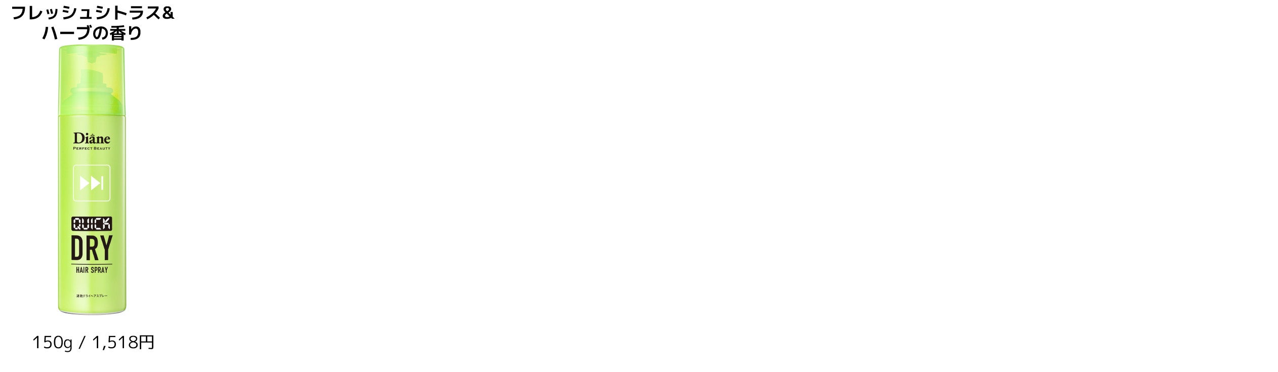 いつでもどこでも使える、リフレッシュハーブエキス配合のダイアン ドライシャンプーは、微粒子パウダー※1で頭皮の余分な皮脂や汗を吸収し、ベタつきをスッキリさせることができるため、髪も頭皮もサラッとリフレッシュしたい時には必携のアイテムです。汗や皮脂による髪のべたつきを抑え、スプレータイプで心地よいリフレッシュ感で肌を引き締め、気になるニオイも抑制 ※2します。