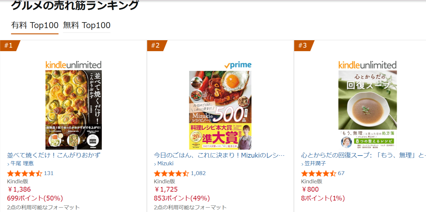 • グルメ(Kindleストア):3位