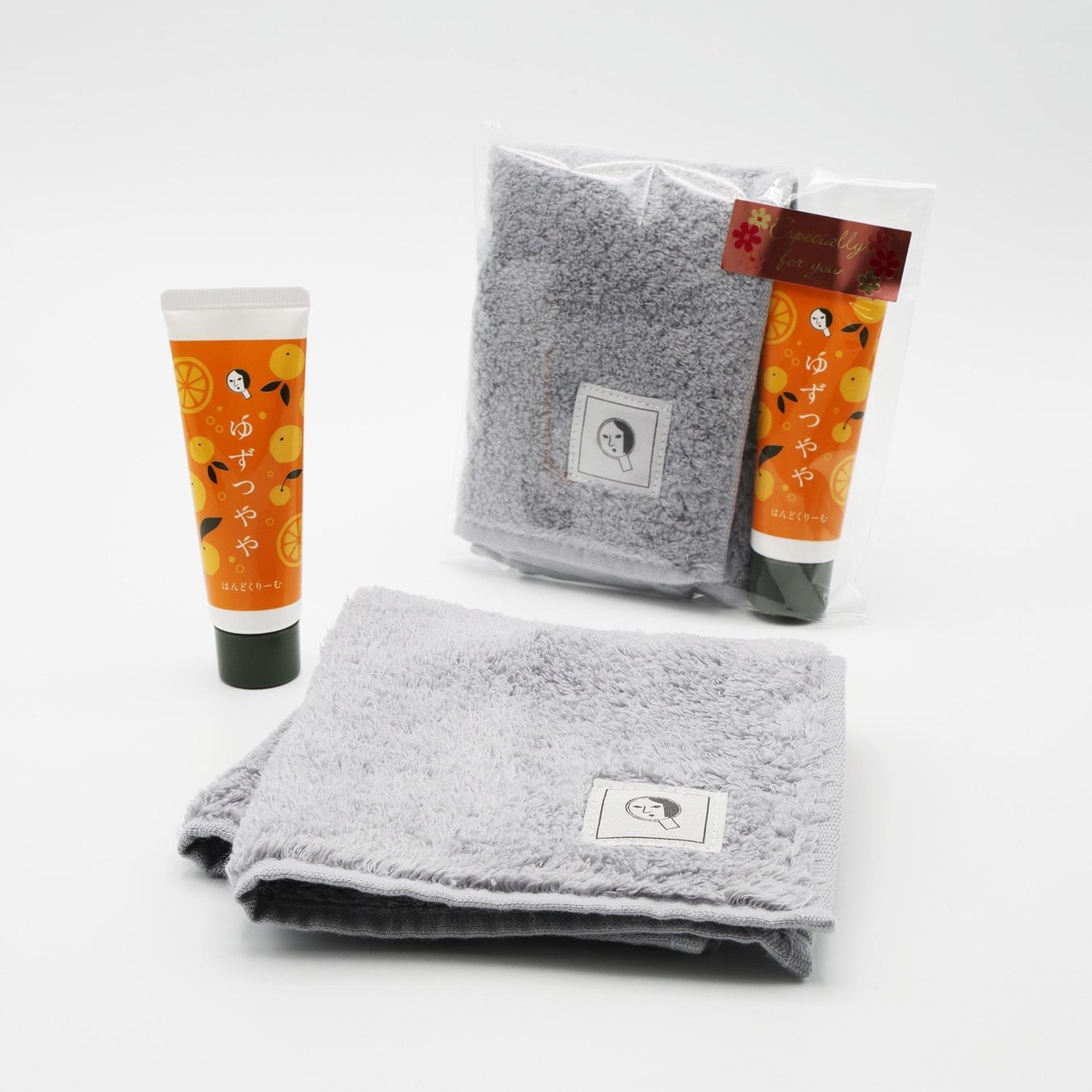 【ゆずつやや はんどくりーむ・ふんわりタオルハンカチ グレー】
